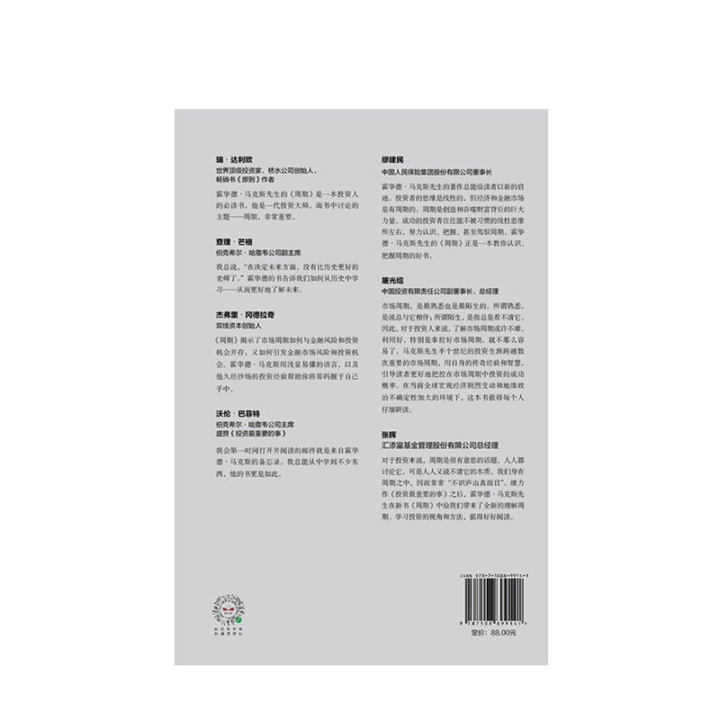 Основатель компании Bridge Water Company и автор лучшей книги «Принципы» Руида Далио рекомендуется: Говард&Bull; «цикл» мистера Макса является обязательным для инвесторов. Он является поколением инвестиционных мастеров, и тема, обсуждаемая в книге—— цикл очень важен.