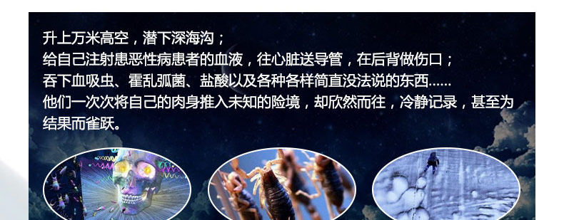 Подняться до десятков тысяч метров высотой и погрузитесь в самый глубокий траншею;Введите себя кровью от злокачественной болезни, отправьте катетеры в сердце и сделайте раны на спине; глотать шистосомоз, вибрионо -холера, соляная кислота и все виды вещей, которые просто неописуемые…&Hellip; они снова и снова подталкивали свои тела в неизвестные опасности, но пошли счастливо, спокойно записаны и даже взволнованы для результатов.