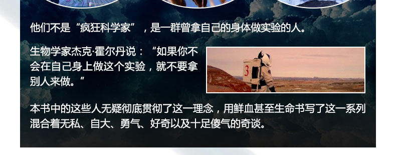 Биолог Джек Холлдан сказал:&LDQUO: Если вы не знаете, как провести этот эксперимент на себе, не используйте других, чтобы сделать это.&Rdquo; эти люди в этой книге, несомненно, полностью внедрили эту концепцию и написали эту серию странных историй, смешанных с самоотверженностью, высокомерием, мужеством, любопытством и глупым кровью и даже жизнью.