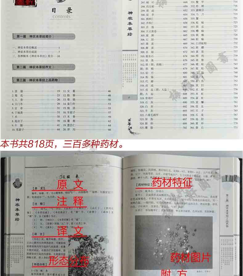 Shennong Materia Medica Classics and Texts Full Note Полный перевод две коробки Черно -белые картин