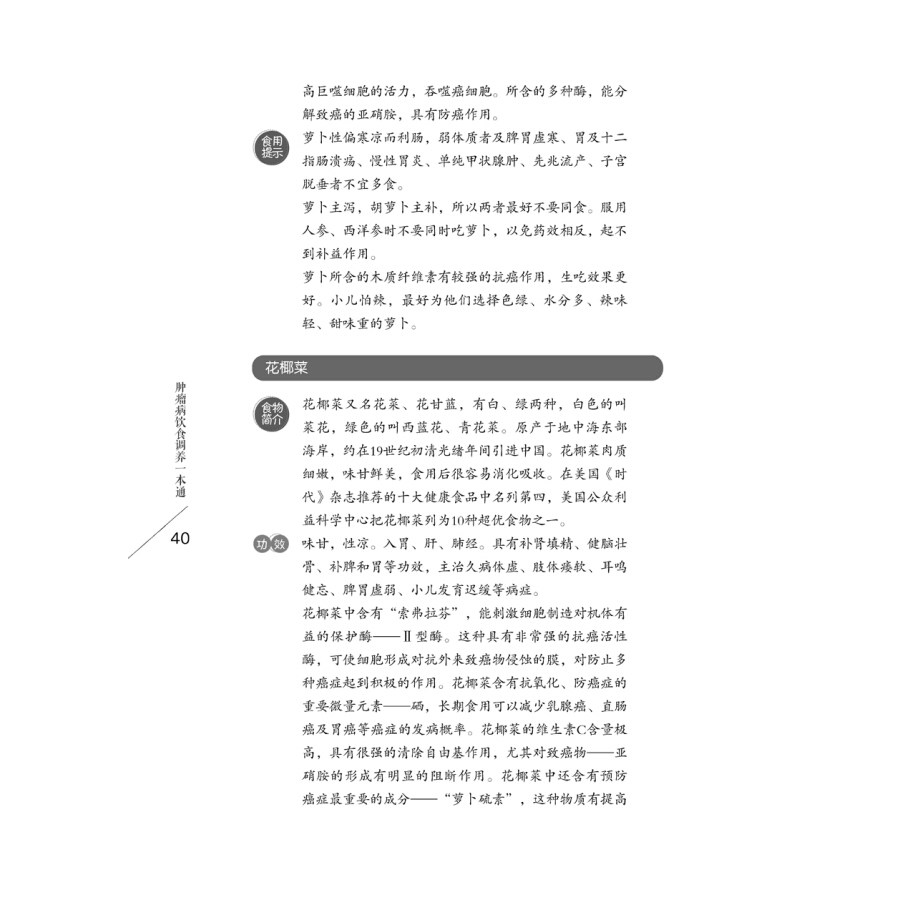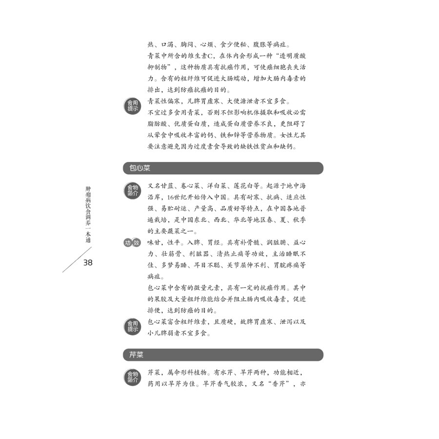 | Основное знание первой части опухоли 1 Что такое опухоль?/2 1. Природная опухоль /2 2. Злокачественная опухоль /2 Как происходит опухоль?/3 Каковы канцерогенные факторы?/4 Как выявлять опухоли на ранней стадии?/5 1. Перепись онкологии /6 2. Проверьте логотип опухоли /7 3. Регулярное физическое обследование /7 4. PET-CT чек /7 5. Самоализация /8 Что мне делать, если у меня есть опухоль?/9 Могут ли опухоли предотвратить это?/11 Каково влияние поведенческого образа жизни на опухоли?/12 Как провести опухоль санитарного просвещения и профилактику сообщества?/14 Вторая часть диеты и путеводителя по питанию 17 Какая диета может способствовать появлению опухолей?/18 1. Высокая диета /18 2. Nitrofolm Compound /18 3. Объект разложения пищи высокой температуры /19 4. Coplinkeexin /19 Как пациенты с опухолями выбирают разумную диету?/19 Каковы проблемы с питанием пациентов с опухолями?/двадцать один 1. Опасность потери веса и недоедания /21 2. План улучшения состояния питания больных раком /22 Каковы недоразумения питания пациентов с опухолями?/двадцать три Недоразумение 1: считается, что увеличивает пищевое собрание Ускорить рост опухоли /23 Недоразумение 2: чрезмерный акцент на табу и средствах для волос /23 Недоразумение 3: слепо дополнение /24 Недоразумение 4: пациенты пьют суп наиболее питательный /25 Недоразумение 5: питание фруктов лучше овощей /25 Каковы типы диет пациентов с опухолями?/25 1. Обычная диета /25 2. Мягкая диета /26 3. Половина тока /26 4. Протекает /27 5. Особые способы диеты /27 Как разумно готовится диета пациентов с опухоли?/28 Как пациенты с опухолями готовит разумные блюда?/28 Как уменьшить побочные реакции опухолевой химиотерапии?/29 Что следует избегать с помощью противоопухолевой пищи?/30 Рекомендованная антимоторная еда /31 1. Граническая долина еда /32 Соя /32 Кукуруза /33 Рис -бран /34 Пшеница /34 Сладкий картофель /35 2. Овощная пища /36 Рапс /36 Капуста /37 Овощ /37 Кафе CAI /38 Сельдерей /38 Радиша /39 Цветная капуста /40 Коньяк /41 Лили /42 Лук /43 Doudou /43 Леонэ /44 Тыква /45 Огурец /45 Горькая тыква /46 Лук /47 Чили /48 Laver /49 Амарант /50 Houttuynia cao /51 Амарант /52 Лук /52 Морковка /53 Чеснок /55 Спаржа /56 Салат /57 Баклажан /58 3. Фруктовая еда /59 Манго /59 Банан /59 Папайя /61 Киви /61 Жалка /63 Seabuckthorn /63 Apple /64 Цитрусовые /65 Абрикос /67 Клубника /67 Боярышник /69 4. Высушенные фруктовые продукты /70 Фрукты /70 Lotus Seed /71 Ядра грецкого ореха /72 5. Бактерий пища /72 Шиитаке /72 Герия гриба /74 Черный гриб /75 Тремелла /76 Соломенная гриба /77 Hiram Mushroom /78 Фламмулина Гриб /78 6. Водная еда /79 Сардина /79 Устрица /80 Моллюска /80 Гребешка /81 Убийство /82 Креветки /83 Морской огурец /84 Водоросль /85 Принесите рыбу /85 Черепаха /86 Черепаха /87 Общие канцерогенные черные списки пищи /88 Третья часть метода лечения китайской медицины 91 Понимание китайской медицины опухолей /92 Принцип традиционной китайской медицины для опухолей /92 1. Сбалансированное питание в рационе, сосредоточенность на поддержке положительных добавок /92 2. Знакомый со вкусом пищи, обратите внимание на дифференциацию синдрома и пищу /93 3. Выберите Anti -Cancer Foods, стремитесь к цели /93 Диета общих опухолей должна избегать и лекарственного приема пищи /94 (1) рак носоглотки /94 Яичный тигр /94 Фрэнм кровь истощена /95 Дантианское яйцо /95 Черепаха Wolfberry Soup /95 Зеленая слива бабао рис /95 Фрукты тушеные мясо /96 Ям лотос суп /96 Янджин напиток /96 Золотая и серебряная роса /96 Порошок chuanbei тушеные мышечное мясо /97 Свинья -паразитный суп /97 Аспажская чай /97 (2) Р