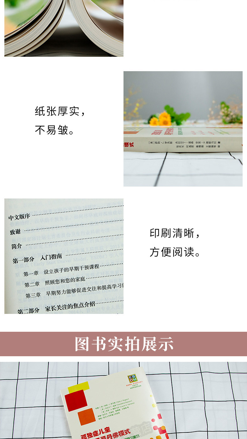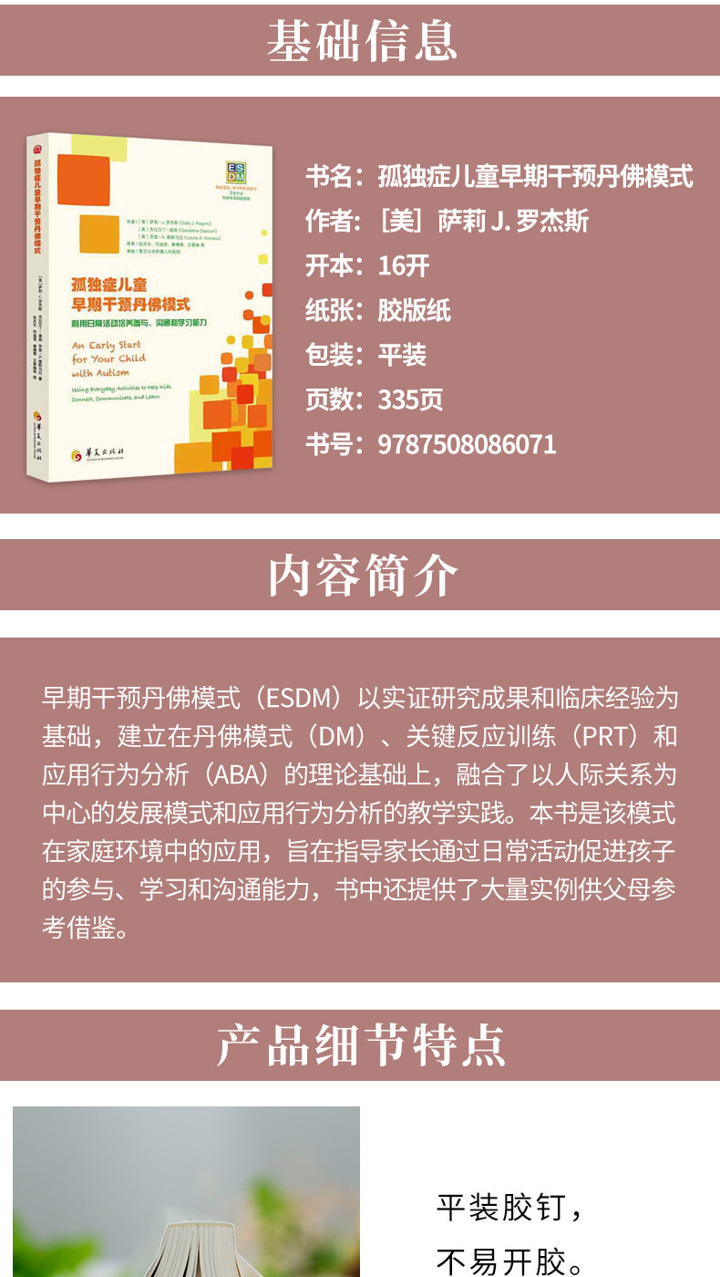 Модель Денвера раннего вмешательства (ESDM) - Салли Роджерс и&Ldquo; голос аутизма&Ранний комплексный метод поведения, совместно разработанный RDQUO;Эта модель основана на теоретической основе модели DAN Buddha (DM), ключевой реакции (PRT) и анализа поведения применения (ABA) и интегрирует практику преподавания, ориентированную на модели межличностного развития и анализ поведения приложений.Эта книга является применением этой модели в семейной среде. Большое количество примеров для родителей для справки.