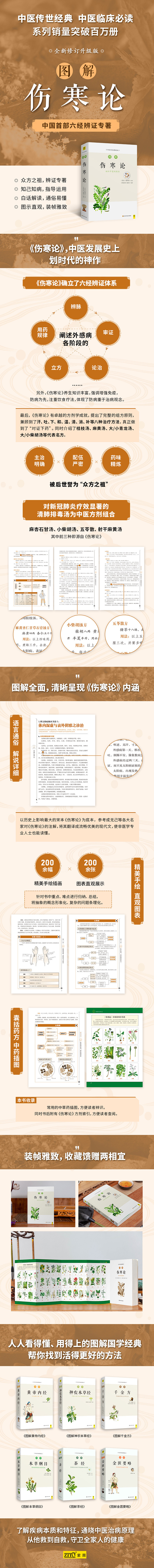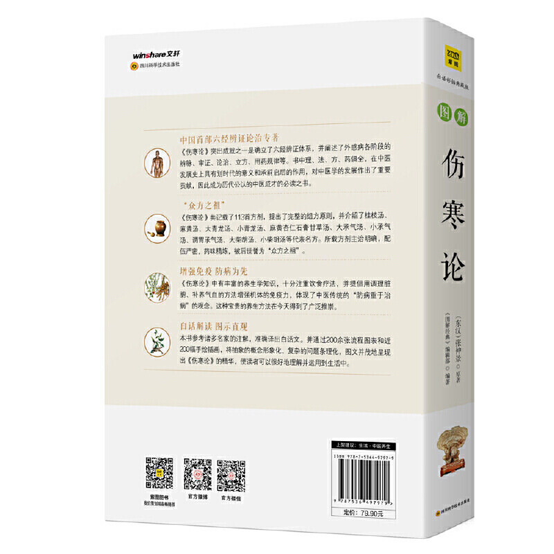 Чтобы представить эту медицинскую классику более полно и совершенно, мы внесли новшества в редактирование оригинальной работы: во-первых, основываясь на самой влиятельной версии «Трактата о лихорадочных заболеваниях» в истории, и ссылаясь на аннотации «Трактата о лихорадочных заболеваниях» известных писателей, таких как Чэн Уцзи, мы перевели ее в гладкий и красивый современный текст.К каждому переводу дается краткое объяснение традиционной китайской медицины; во-вторых, благодаря внедрению современных методов построения диаграмм сложное становится простым, а абстрактное — конкретным, так что эту древнюю медицинскую книгу сможет понять каждый.Во-вторых, каждое лекарство дополняется, исходя из их производной связи с древней цивилизацией, а оригинальная книга дополняется и обогащается в виде кратких и всеобъемлющих тем с картинками и текстами.В-третьих, объясняются четыре типа иллюстраций, включая линейные рисунки, изысканные цветные рисунки и рисунки человеческого тела каждого лекарственного средства, стремясь сохранить его классические характеристики и максимизировать его практическую ценность. Его можно использовать как один из незаменимых справочников на столе медицинских работников, так и как классику повседневной жизни и здоровья для современных людей.