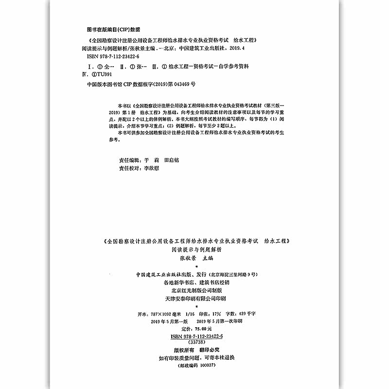 SPOT 2019 Новая версия «Национальный дизайн -инженер -инженер, инженер -инженер, сдал квалификационный экзамен для водоснабжения» для водной инженерии », и примеры Анализ Чжан Цюдзин, давая книги по эксплуатации дренажа