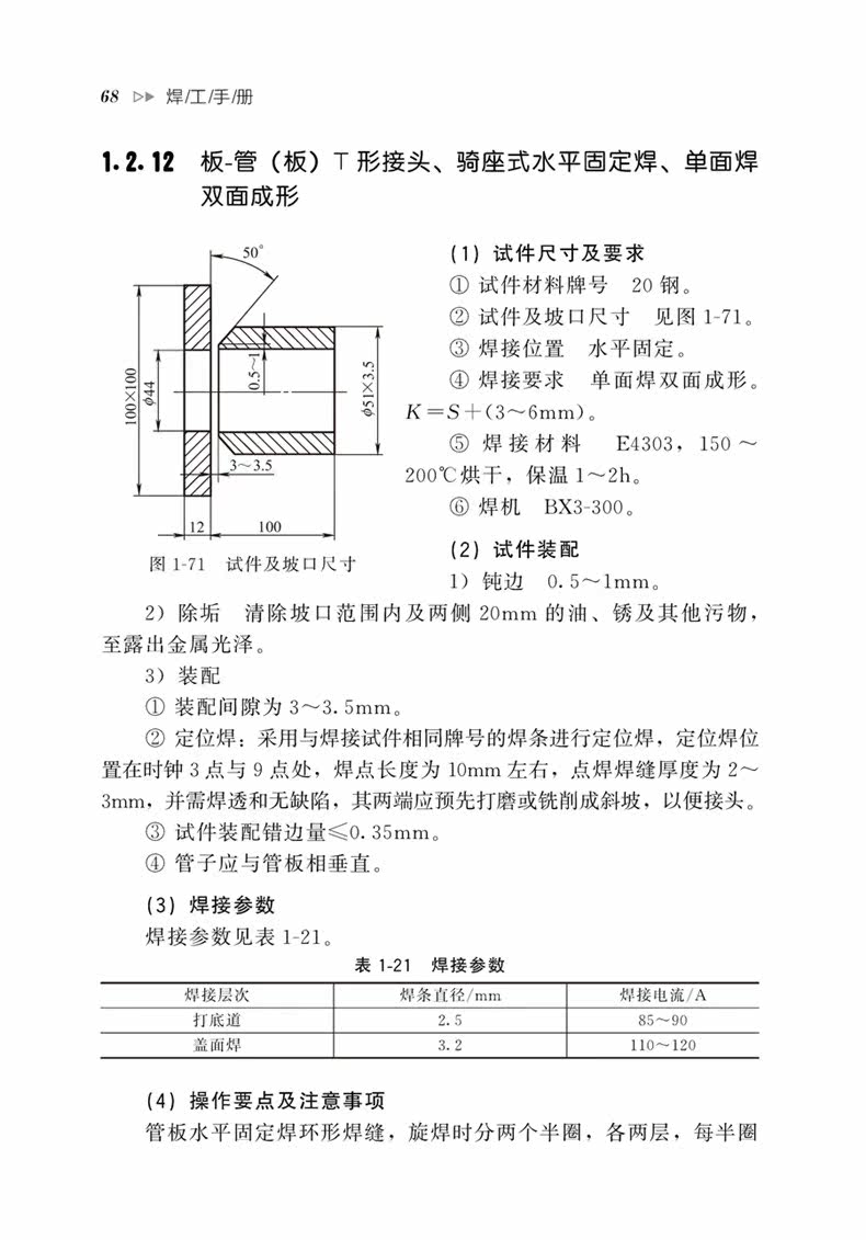 1.2.15 Стыковочная стыковка трубки с большим диаметром, u -форма, горизонтальная сварка вращения, односторонняя сварка двойная образование 74