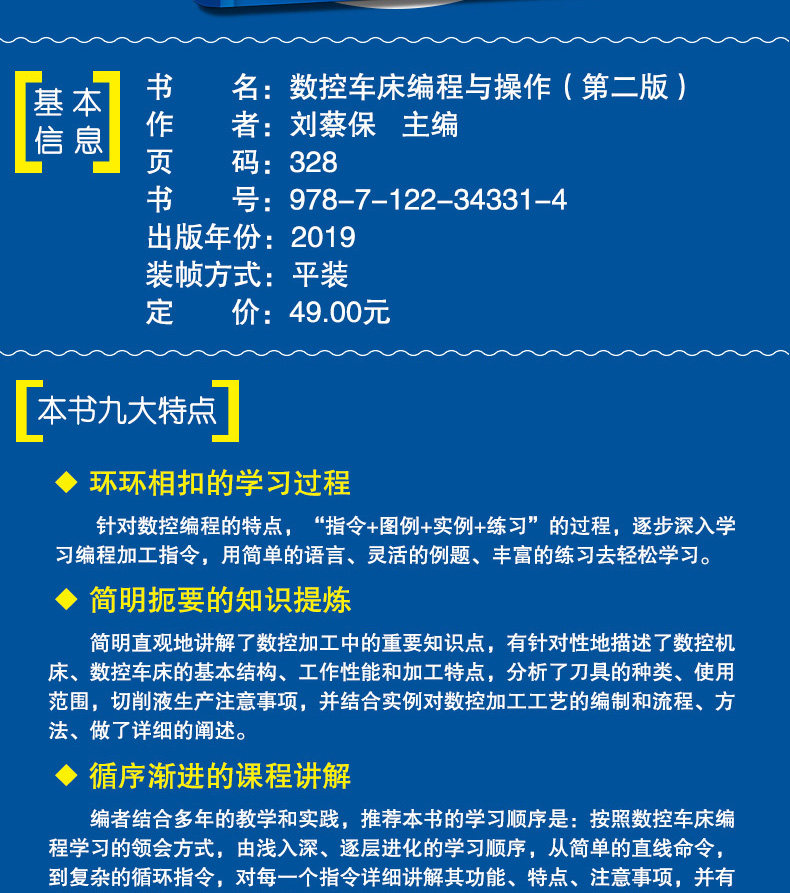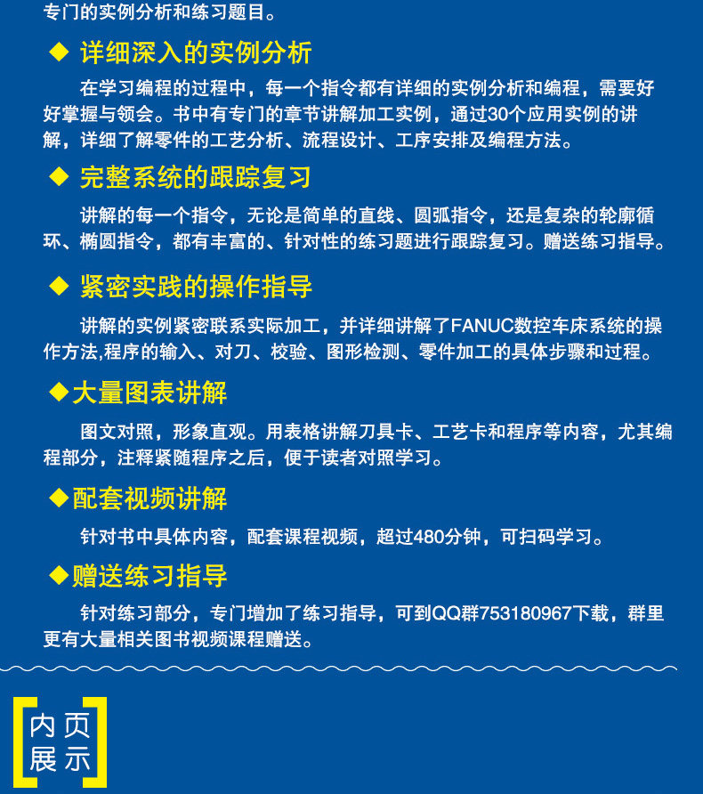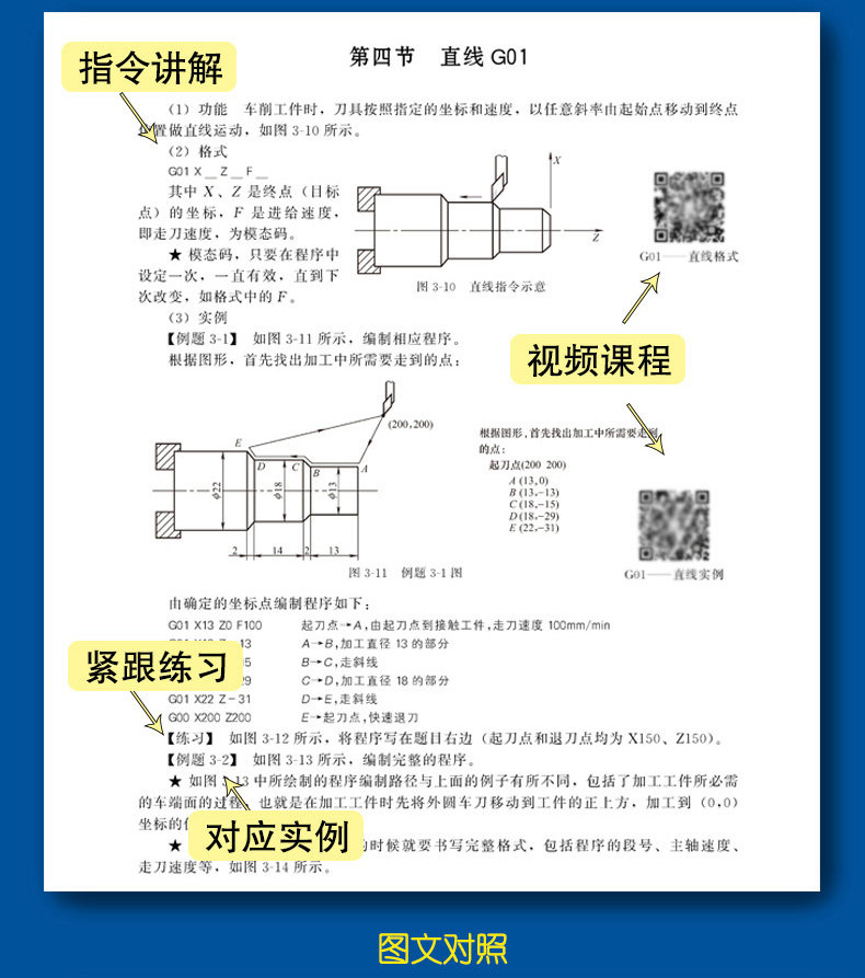 В этой книге преобладает выделение программирования. На основании анализа процесса обработки применяется множество случаев. Она фокусируется на методах работы и идеях программирования общих типов продуктов в производстве предприятий. Подробное объяснение каждого вопроса подробно . +Практикуя метод обучения постепенно изучая инструкции по программированию, и благодаря тщательно выбранным типичным случаям были подробно объяснены программирование и процессы процессов обработки ЧПУ.Что касается удобства обучения, учебное видео с CNC Ratee оснащено учебным видео, читатели могут посмотреть QR -код в книге.Кроме того, практическое руководство в практической части.