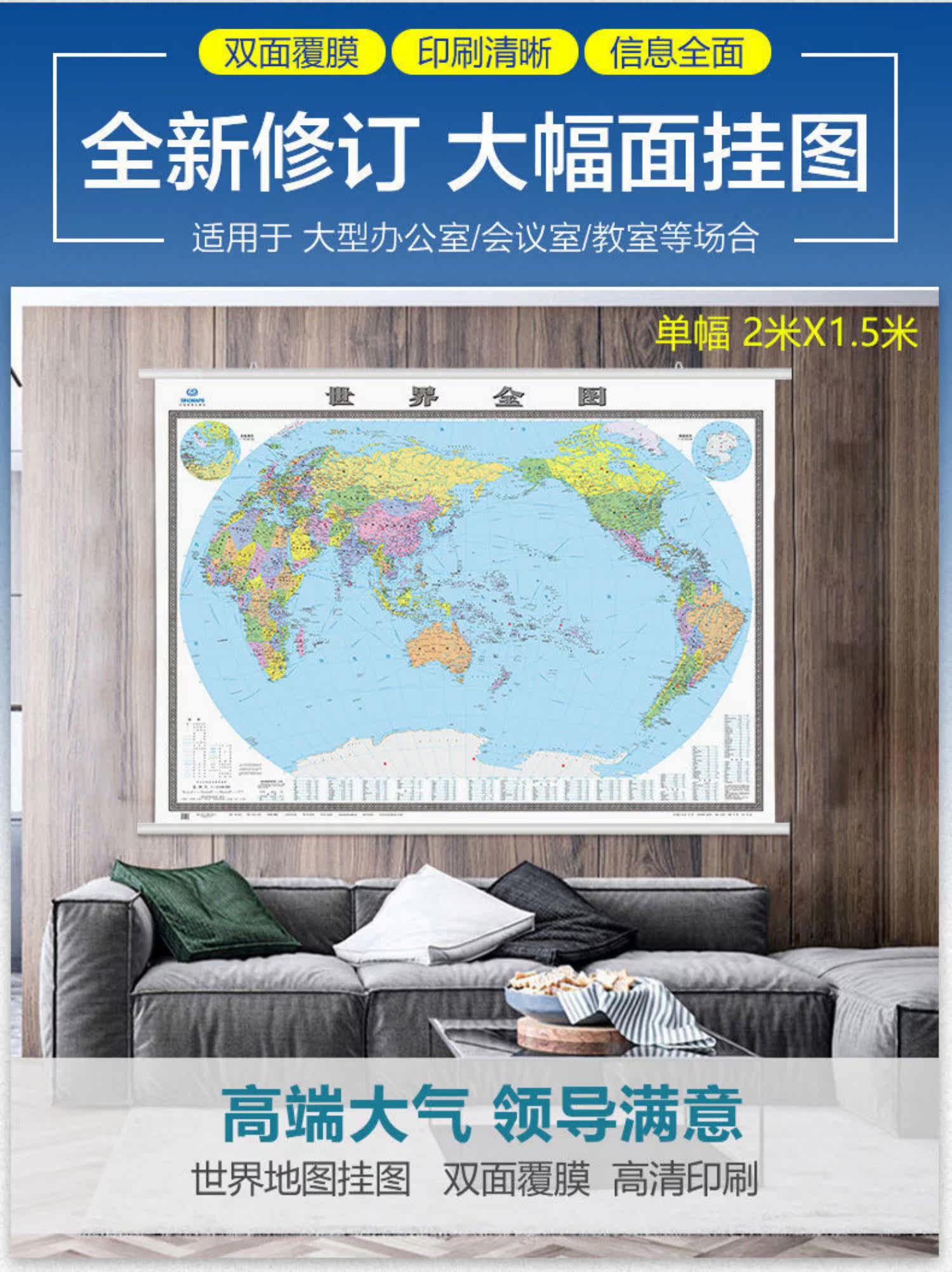 Карта, большой флип-чарт, двусторонний водонепроницаемый подвесной стержень, 2022, 2м, 1.5м, новая версия