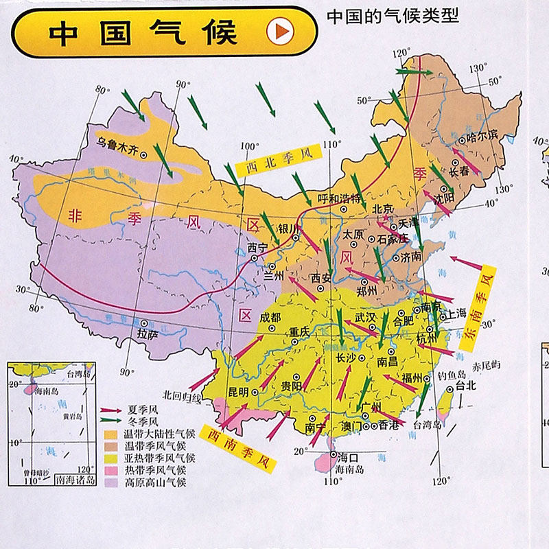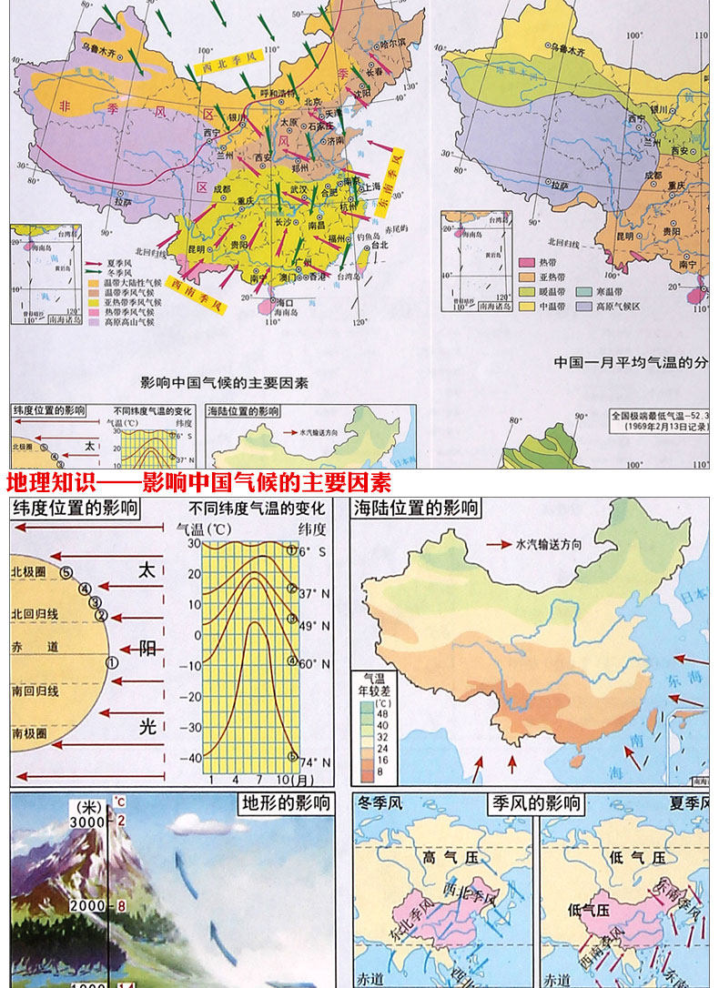 2021 Новая версия China Geographic Map Special Edition Специальное издание Новая учебная программа Стандартный стандарт средней школы Географическая обучение географическая помощь Четыре EM, у которых есть солнечные термины, подразделение часовых пояс для продольных часовых пояс для учащихся младших средней школы, посвященных младшим старшеклассникам средней школы.