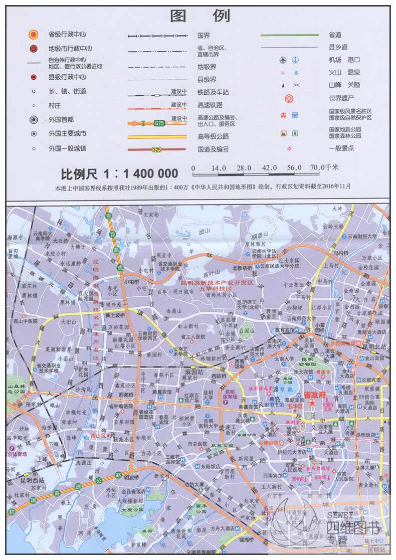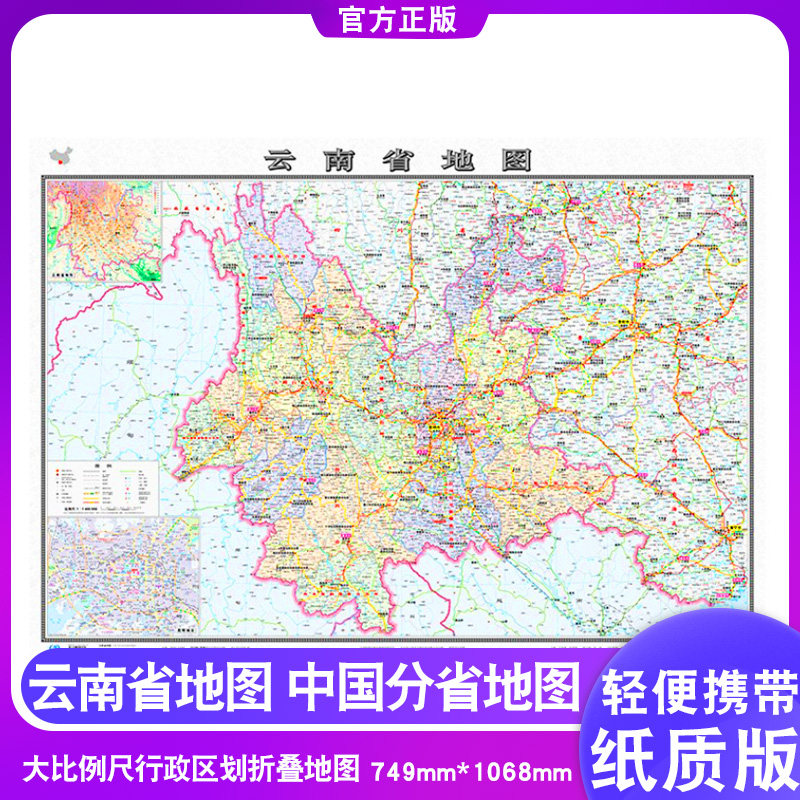 Китайская карта из провинции Юньнань, складной высокоскоростной шоссейный флип-чарт, коллекция 2023, новая версия, 0.75м