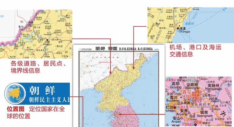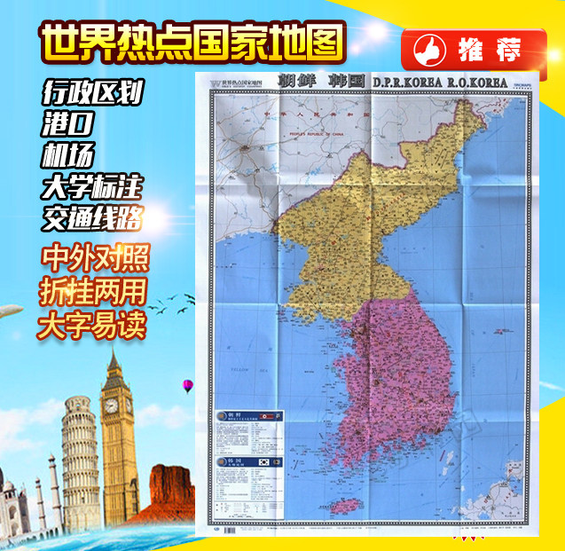 2021 Новая Северная Корея Южная Корея/Мировая горячая национальная карта (издание Big Percaments) 1,17x0,86 метра Северная Корея Карта Корея Карты Стандартные места названия транспортных портов Аэропорт Аэропорт Университет.