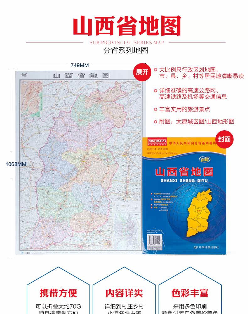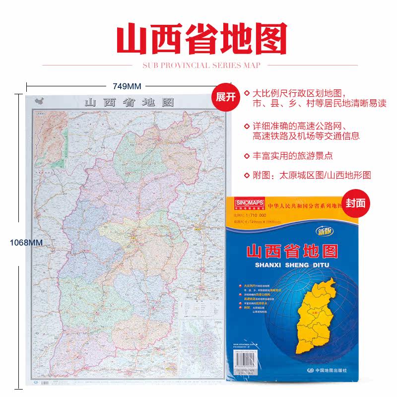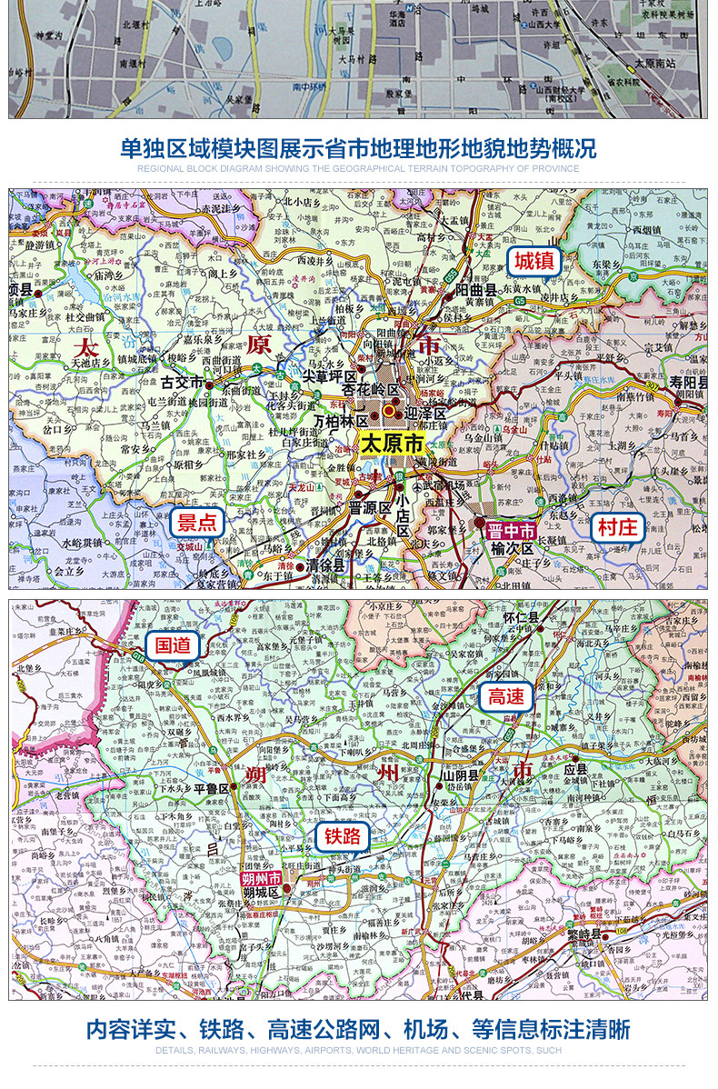 2023 Новая версия Shanxi Map Shanxi Map Shanxi Map Новая версия складных наклеек складных настенных стен в Тайюане городской городской городской зоны Туризм Туризм Топографическая карта самостоятельно путешествующая по автомобильной области.