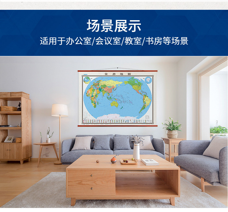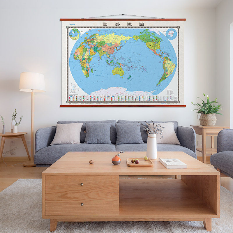 [Средняя берега] Карта мира висят рисунок 1,8x1,3 метра негабаритного размера без сшивания без сшивания в твердом переплете с двумя двумя гольф