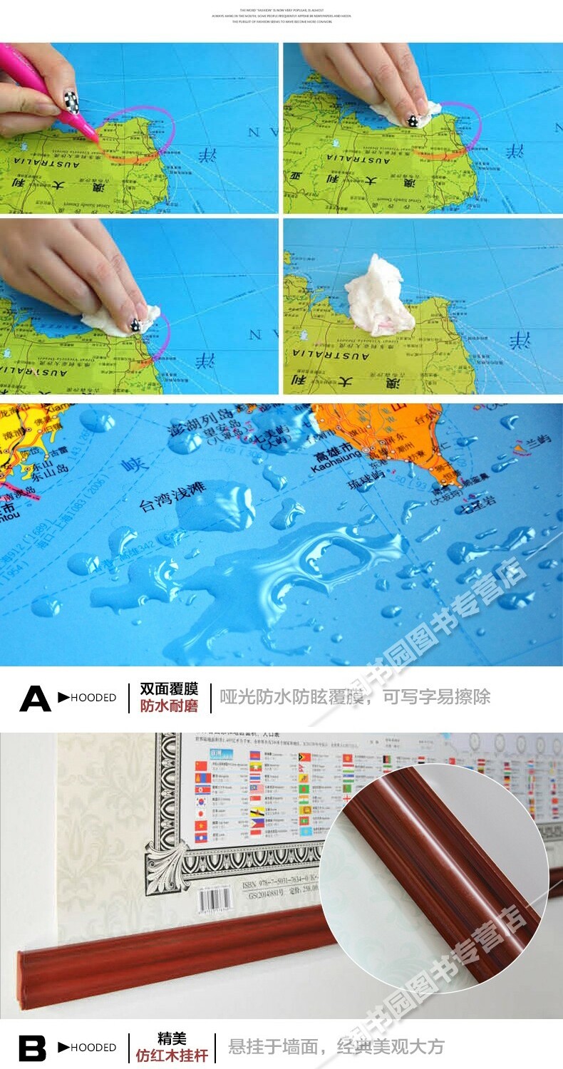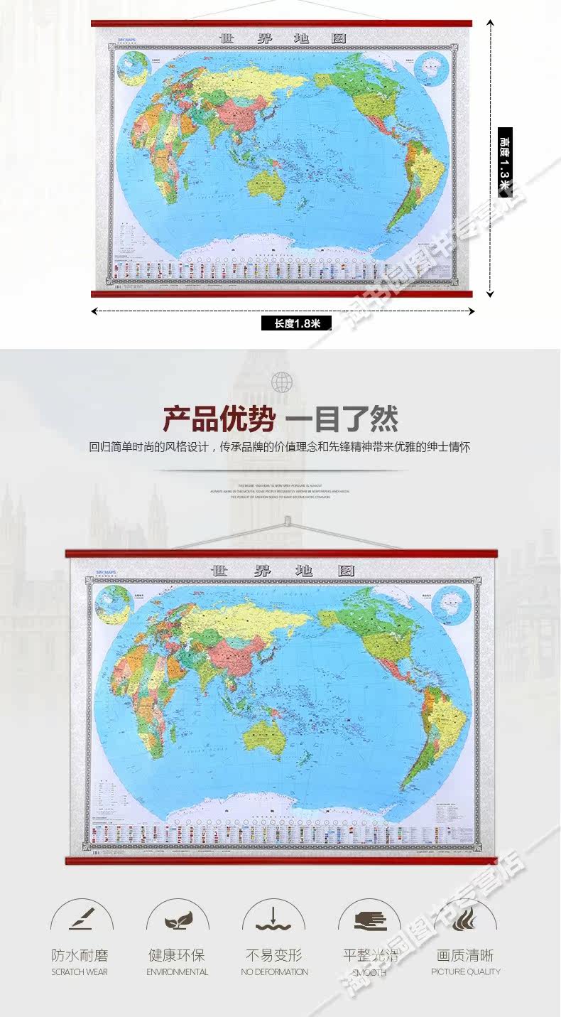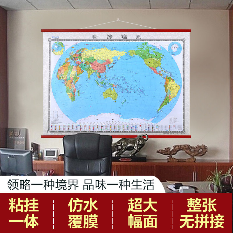 [Серия босса] 2022 г. Мировая карта висят рисунок 1,8x1,3 метра, полные сшивающих имитационных имитации красного дерева.