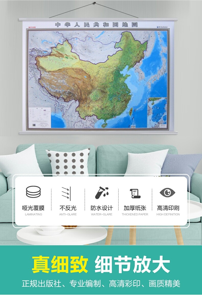 Китайская топографическая диаграмма висящая диаграмма Террананское издание для приспособления для приспособления для подвесного выпуска Snieper Повешивание рисунки 1,4 метра X1 метра с двумя с двумя с двумя двумя покрытиями водонепроницаемые целые бизнес -офис для бизнес -офиса для Народной Республики Китайская карта офис 3