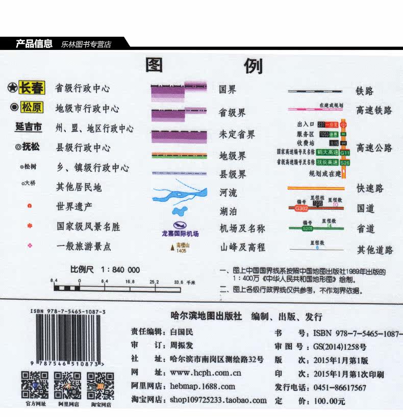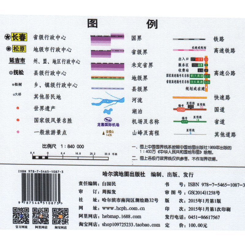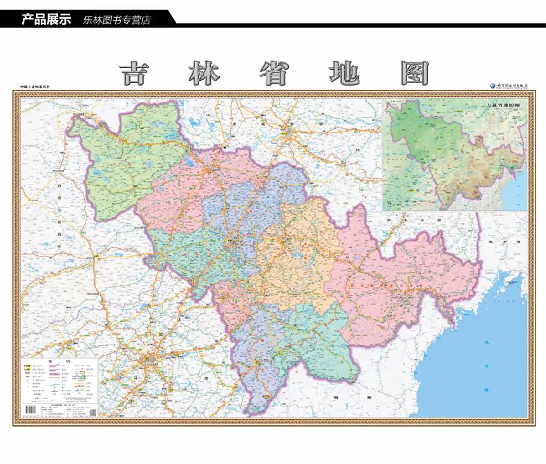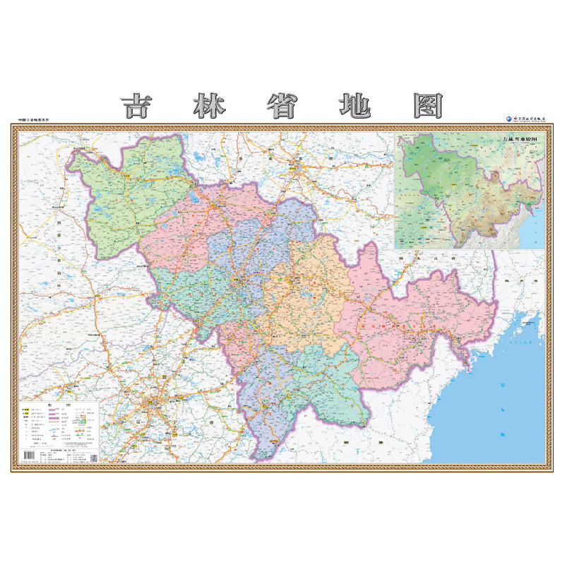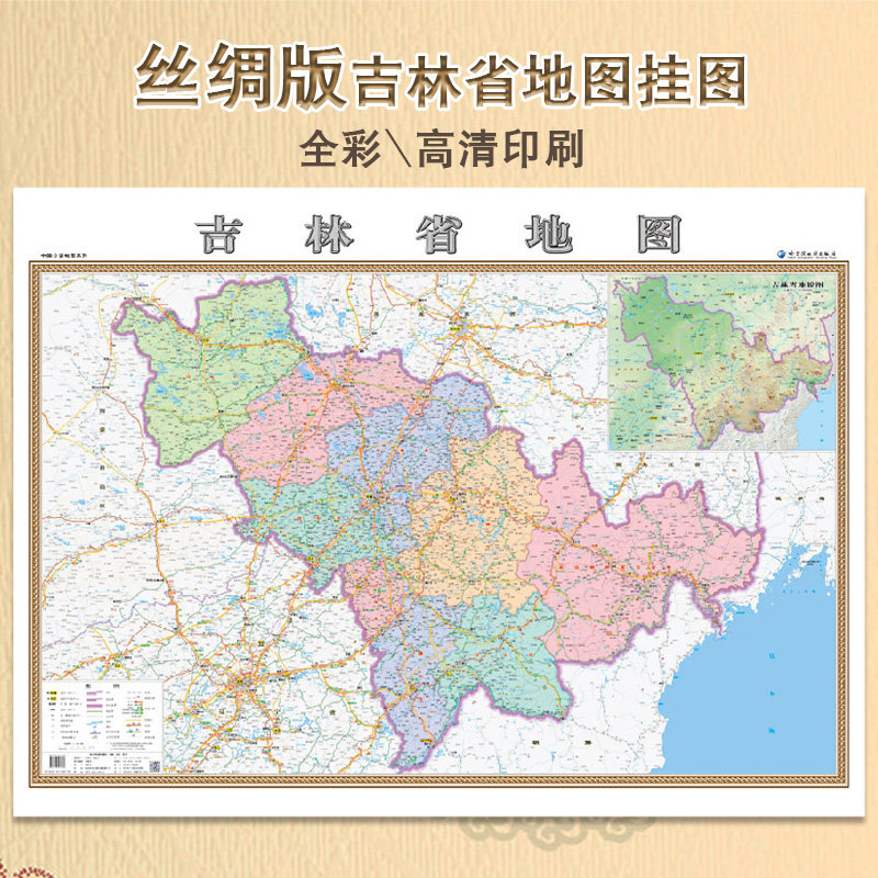 [Шелковая карта] Новая версия Jilin Map Hanging Map Silk Edition 1.1m x0.8m HD Exquisite Color Sear