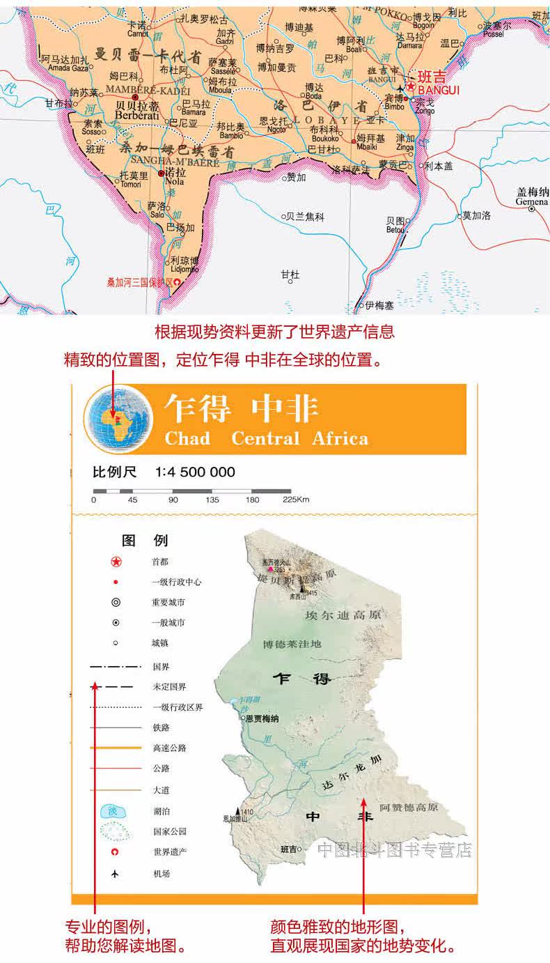 [Midtix Beidou] Мировая карта Африка -Китайский и иностранный язык, китайские и иностранные языки, большие поверхности и новая упаковка более портативны 59,4 см × 42 см.