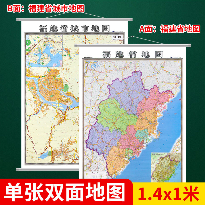 2022 Новая версия Fuzhou Map 1.4x1m AB Face B Face B Face Fujian Map A -Face City Map