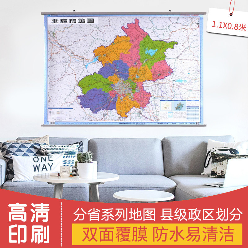 Карта, китайский двусторонний водонепроницаемый флип-чарт, 2020 года, Пекин, новая версия, 1.1м, 0.8м