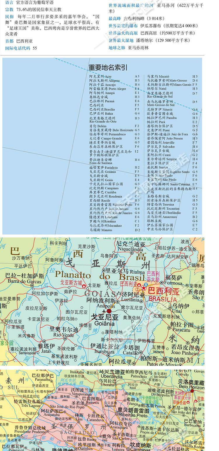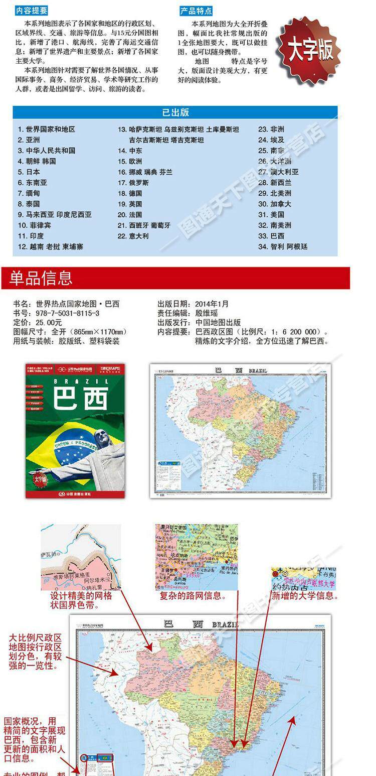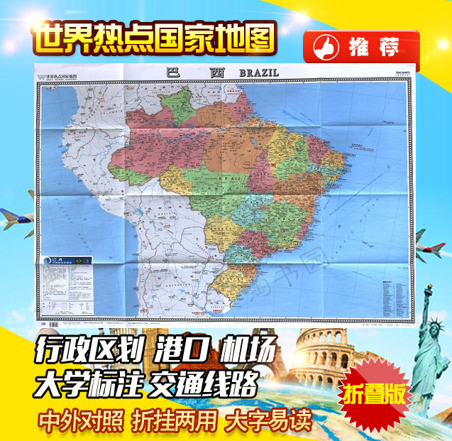 Новая бразильская карта World Hotspot Map Карта страны. Внутренняя издательская издательская издательская китайская и иностранные языки Сравнение крупная версия с двойным использованием, 865 мм × 1170 мм Daquan