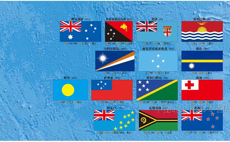 [Официальный магазин] Около 1,2 метра карт Океании в Китае и английском языке на карте Всемирного дивизиона Австралия, Австралия Новая Зеландия Новая Гвинея Seta Solo Map Press, Map Beidou Rcep 15