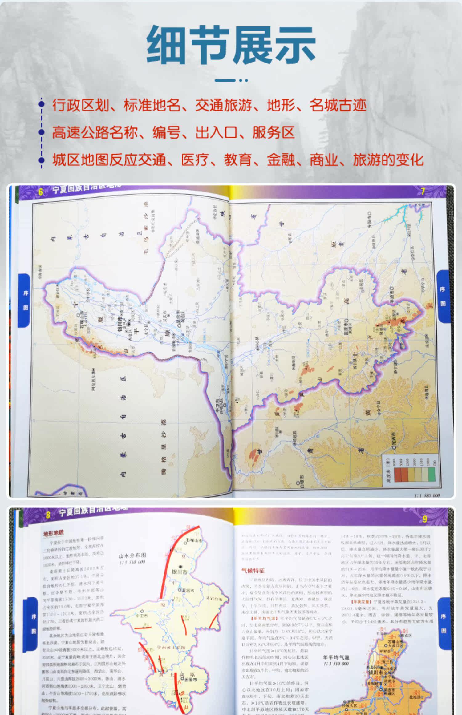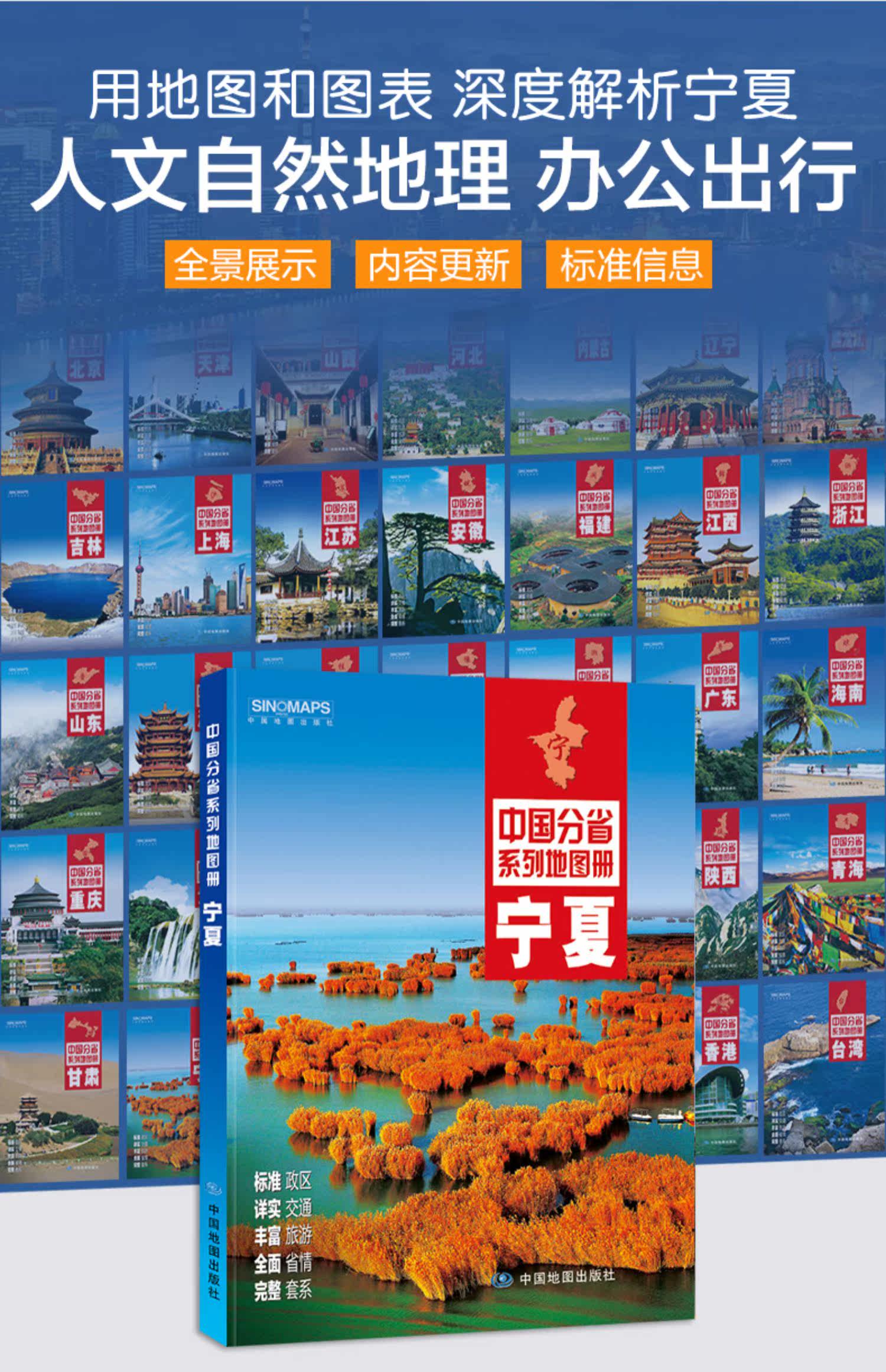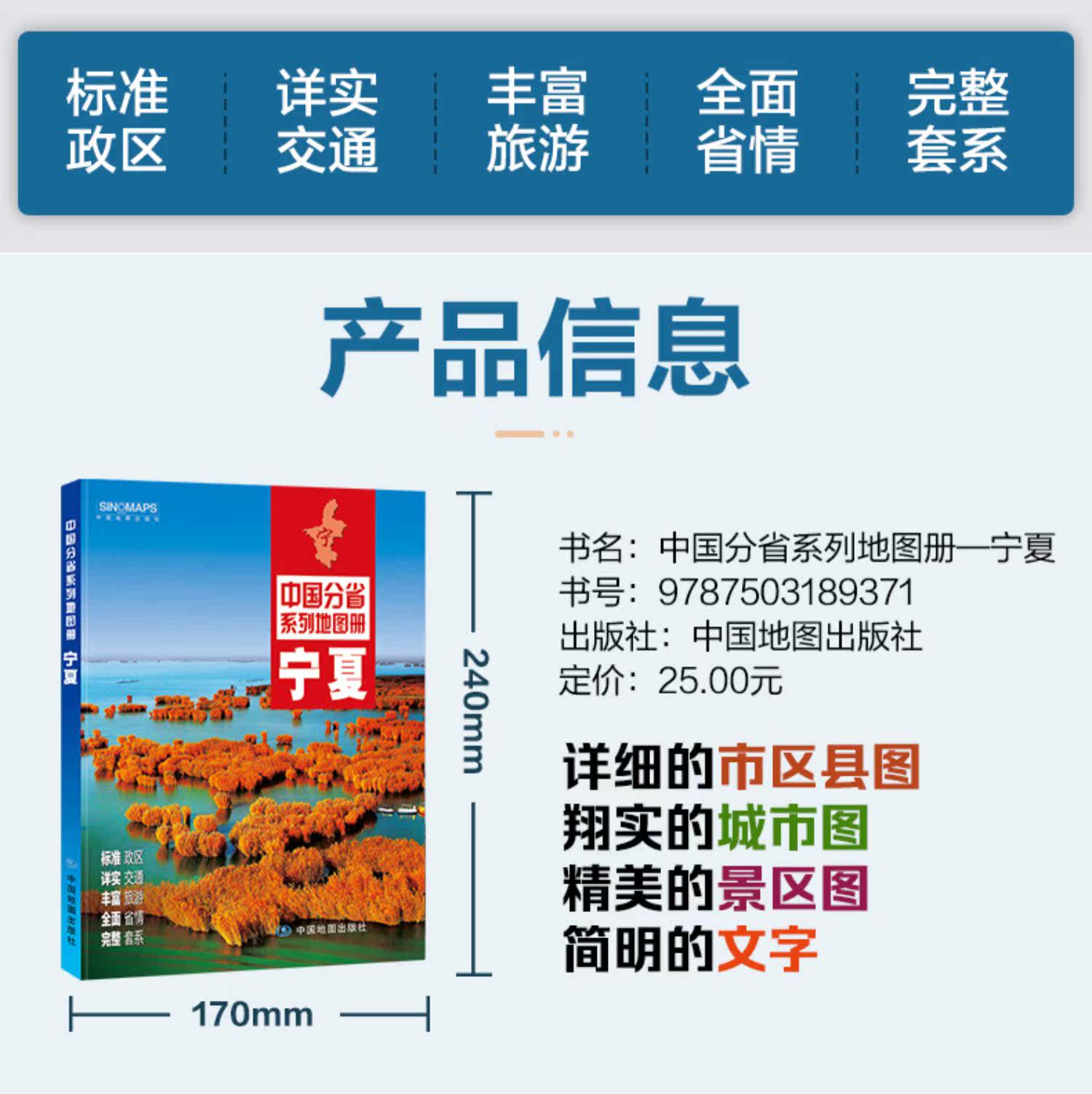 2022 Ningxia Hui Автономный регион Трафик и туристический карт Книг Коллекция Географии человека и географического стиля Китайская серия дивизии Бумажная бумага 170x240 мм Китайская карта пресса