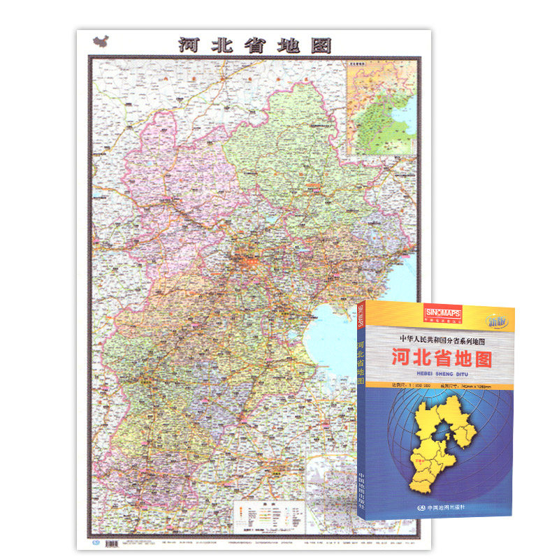 Бумажная коробка складывающаяся складная карта Хэбей Китайской Республики, провинции Китайской Народной Республики, серия крупных крупных лиц в 1,07 метра*0,75 метра в административном разделе, подробные трафики на тематической карте Хэбэй.