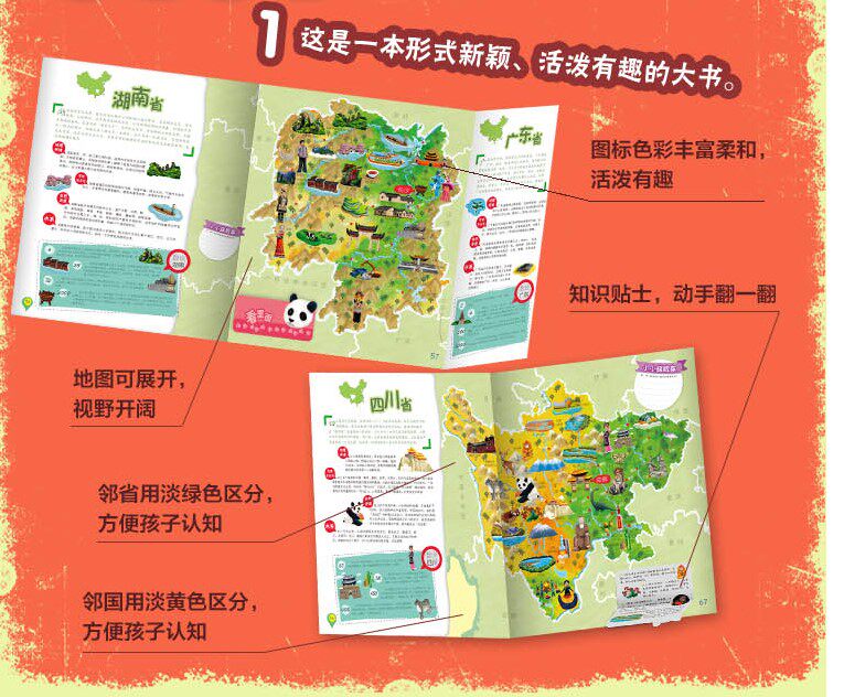 [Детская география] Детская карта Энциклопедия китайской карты, карта книги китайская карта Детская версия Китай Ароматная интерактивная интерактивная книга страница складывания полной цветной страницы детская человеческая география