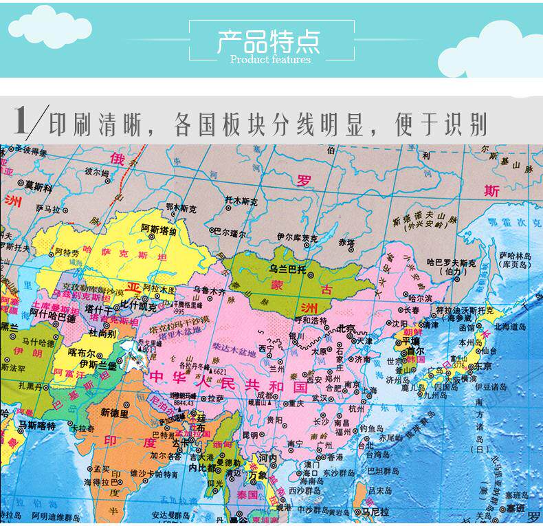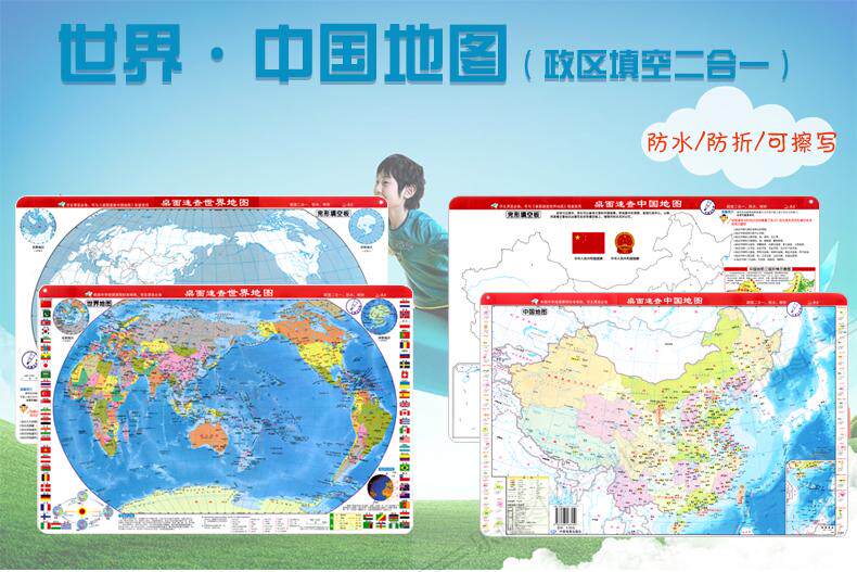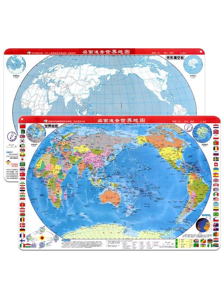 [Подарок можно потерте] Настольный осмотр 2023 Новая версия китайской карты карты мира (входное издание расширяет память о политической области). Студенты населения политического округа в мировом флаге водные студенты в мире