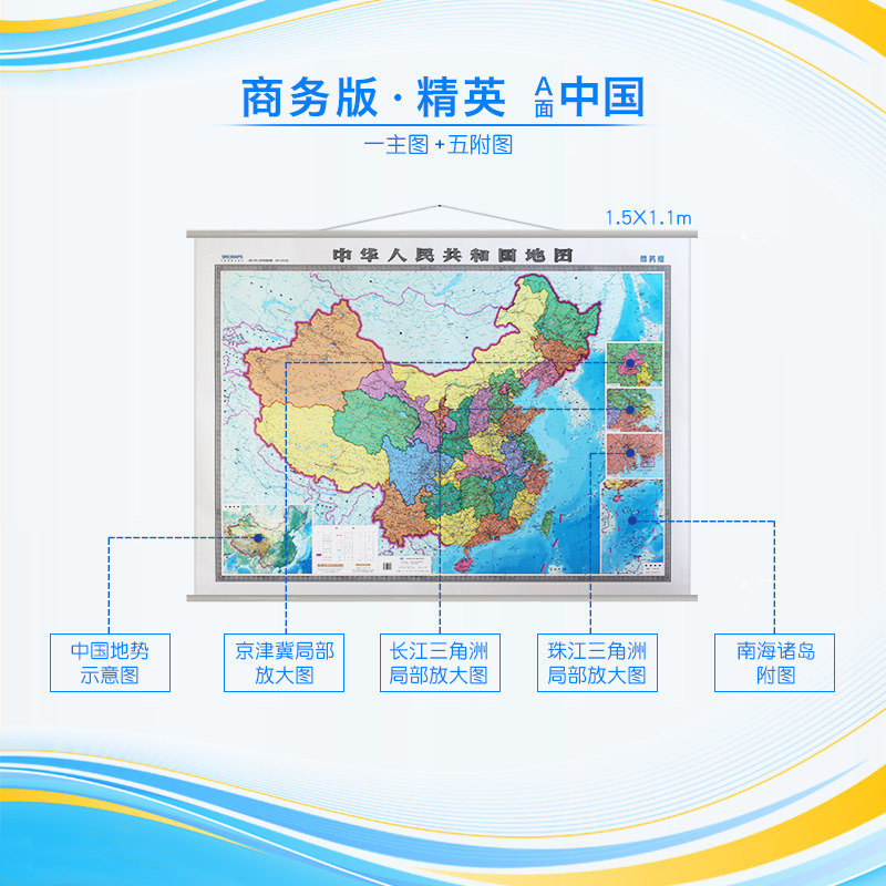 Двусторонная китайская карта, большой китайский флип-чарт, 1.5м, 2020 года