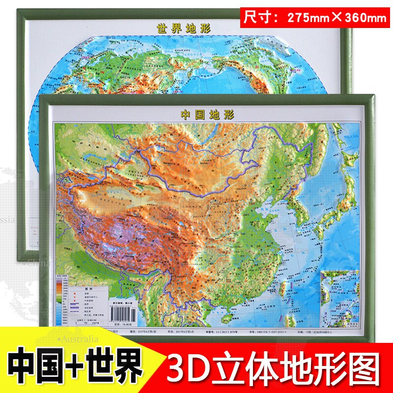 Топографическая карта Китая + топографическая карта мира 2 книги 3D трехмерная топографическая карта Географическая карта младших и старших классов большая карта Топографическая карта Китая Топографическая карта мира трехмерная карта Издательство Chengdu Map