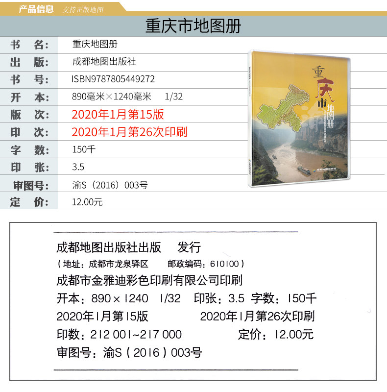 Подлинное место 2021 г. Новая карта Чунцина Книга Чэнду Карта издательство Чунцинг, округ (автономный графство, город) Политический округ Карта туризм и судоходная карта городской карты