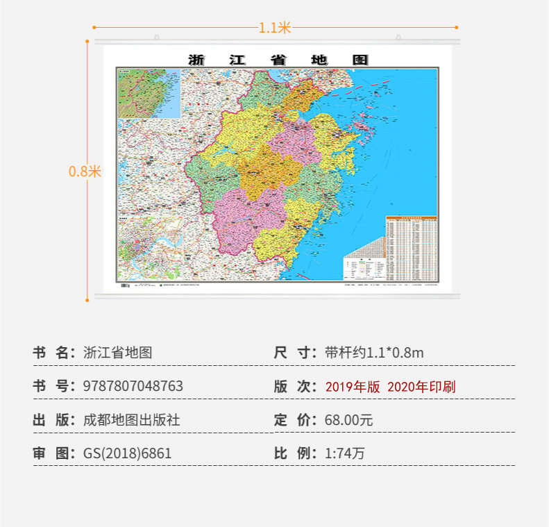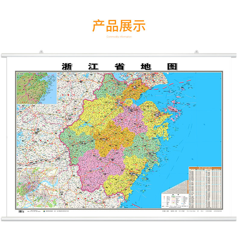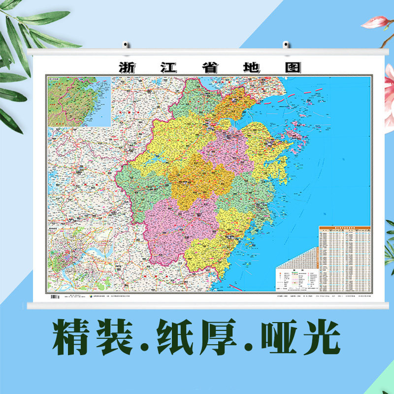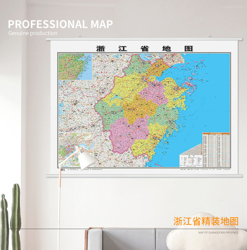 [Версия в твердом переплете] 2021 Новая версия Zhejiang Map Hanging Рисунок 1.1*0,8 метра с двумя двумя двумя с двумя с двумя планами водонепроницаемы