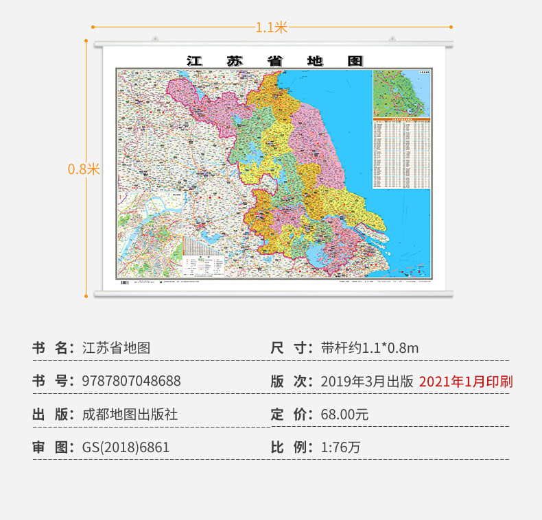 [Издание в твердом переплете] 2024 Новая версия карт карты Цзянсу около 1,1*0,8 метра мембранной водонепроницаемой висящей висячи