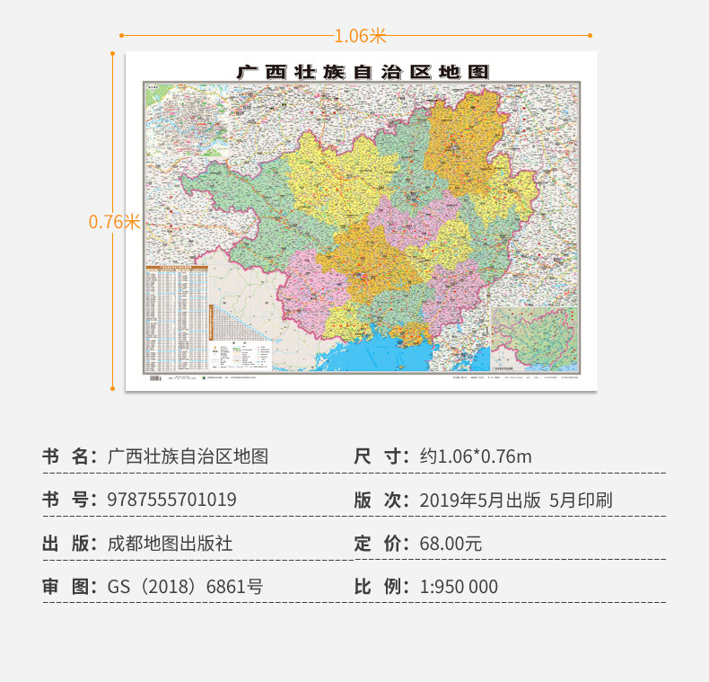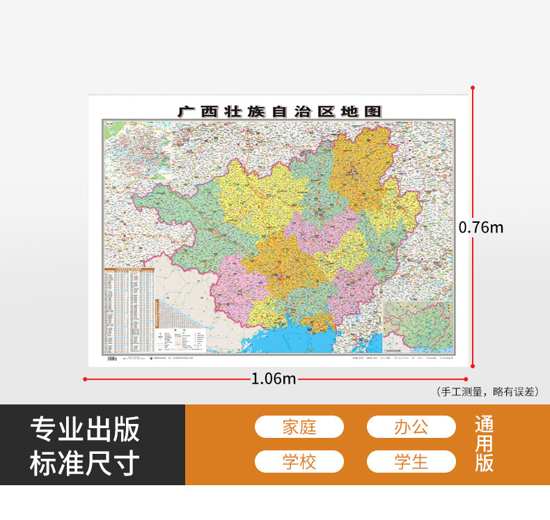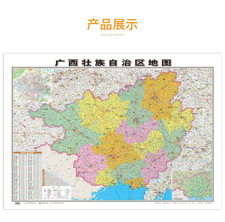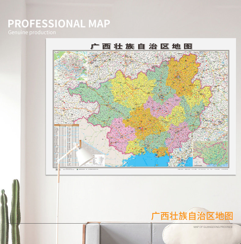 [Официальный прямой бизнес] 2022 Новая версия Guangxi Zhuang Автономный регион Карты карты около 1,1*8,8 метра с двумя двумя двумя двумя, водонепроницаемые высокопоставленные высокооделенные