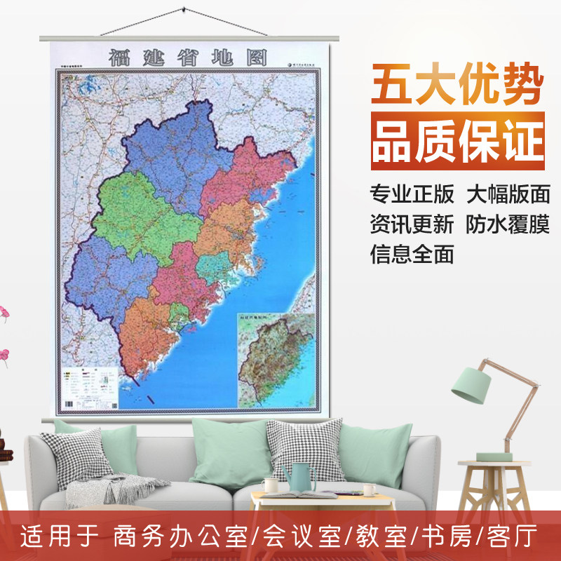 [Двойная висящая диаграмма] 2020 г. Фуджянская карта, висящая карта, Канада Фучжоу карта, висящая карты печати землев.