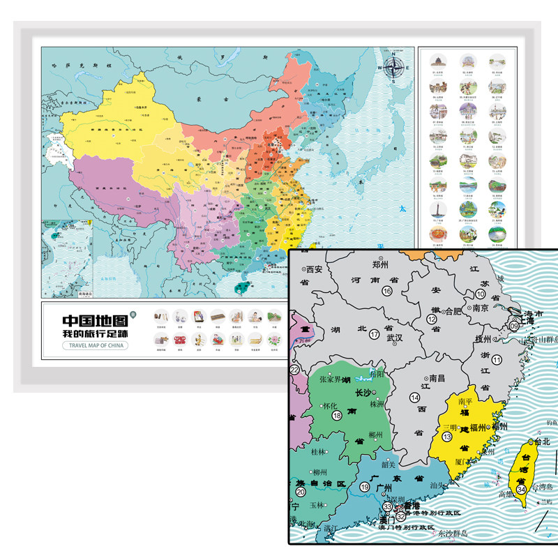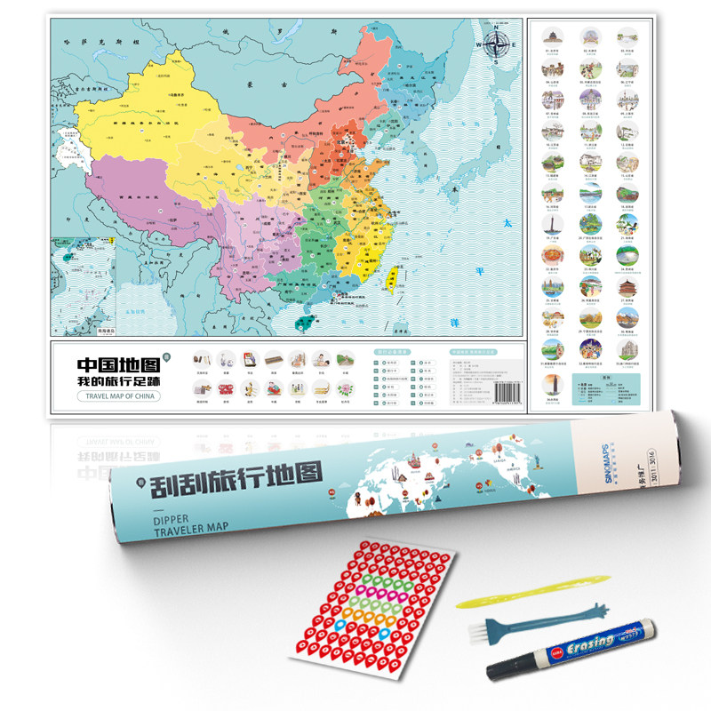 [Подарочные инструменты] Соскабливание карты Китая Карта моей поездки на пути DIY Маркировка дорожного пути