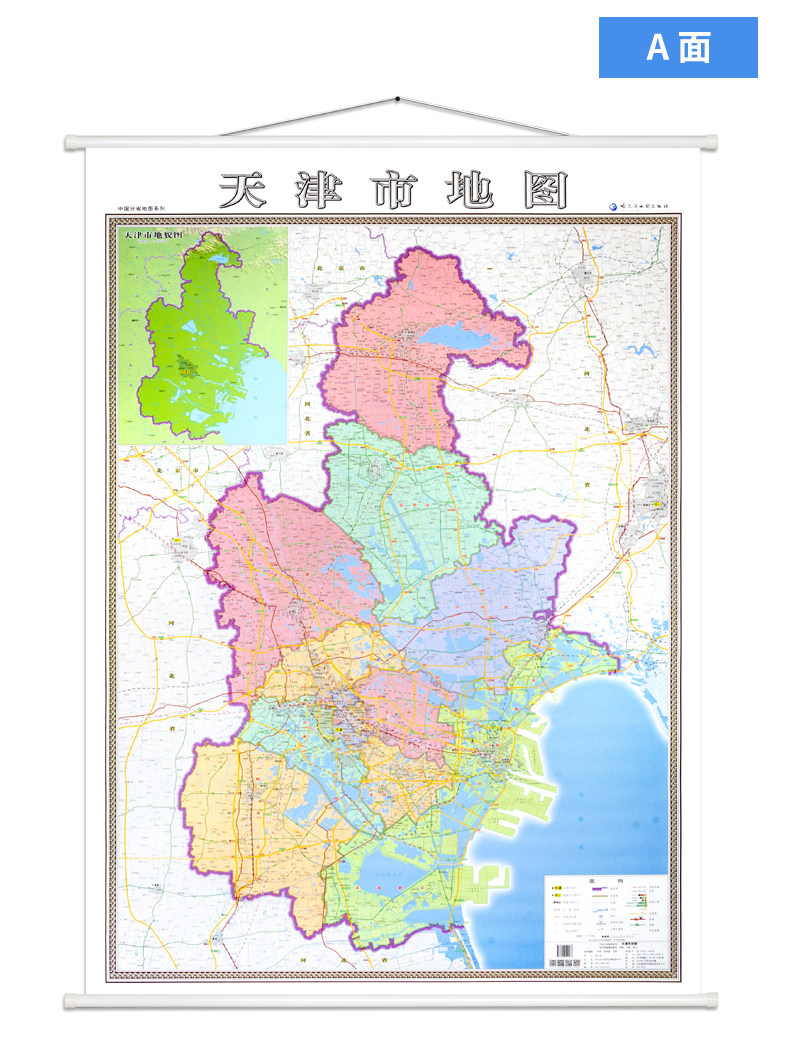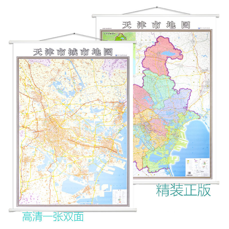 Новая изысканная версия Tianjin Map A Face+Tianjin Urban Urban Area Hanging Discoring Baard B Face 1 -метровый x1,4 метра Полная карта водонепроницаем