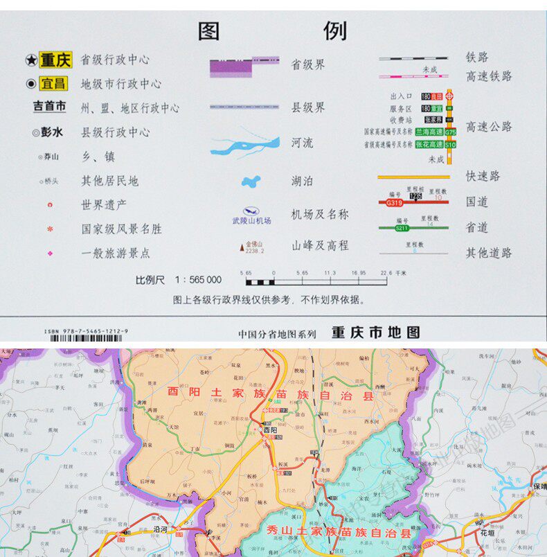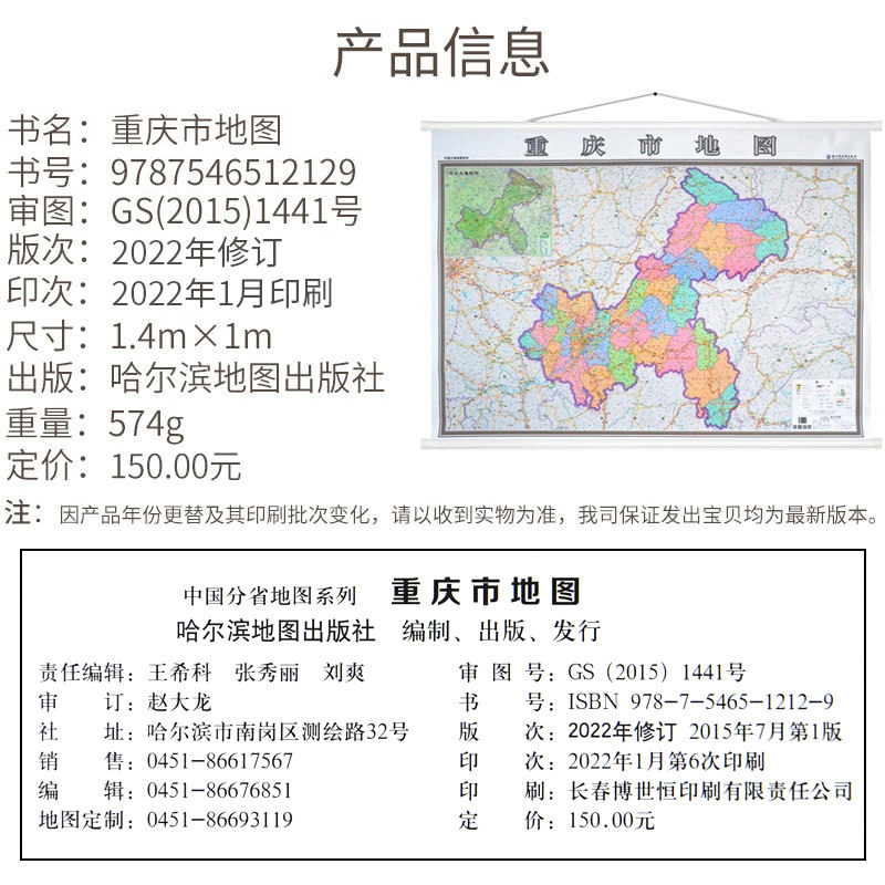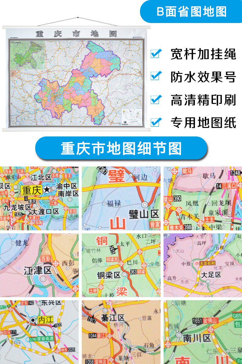 2022 Новая версия изысканная двусторонняя карта Чунцина-сторона + Чунцинг городской карты B Сторона 1,4x1 метра сверхуровневая высокоразмерная ламинированная водонепроницаем