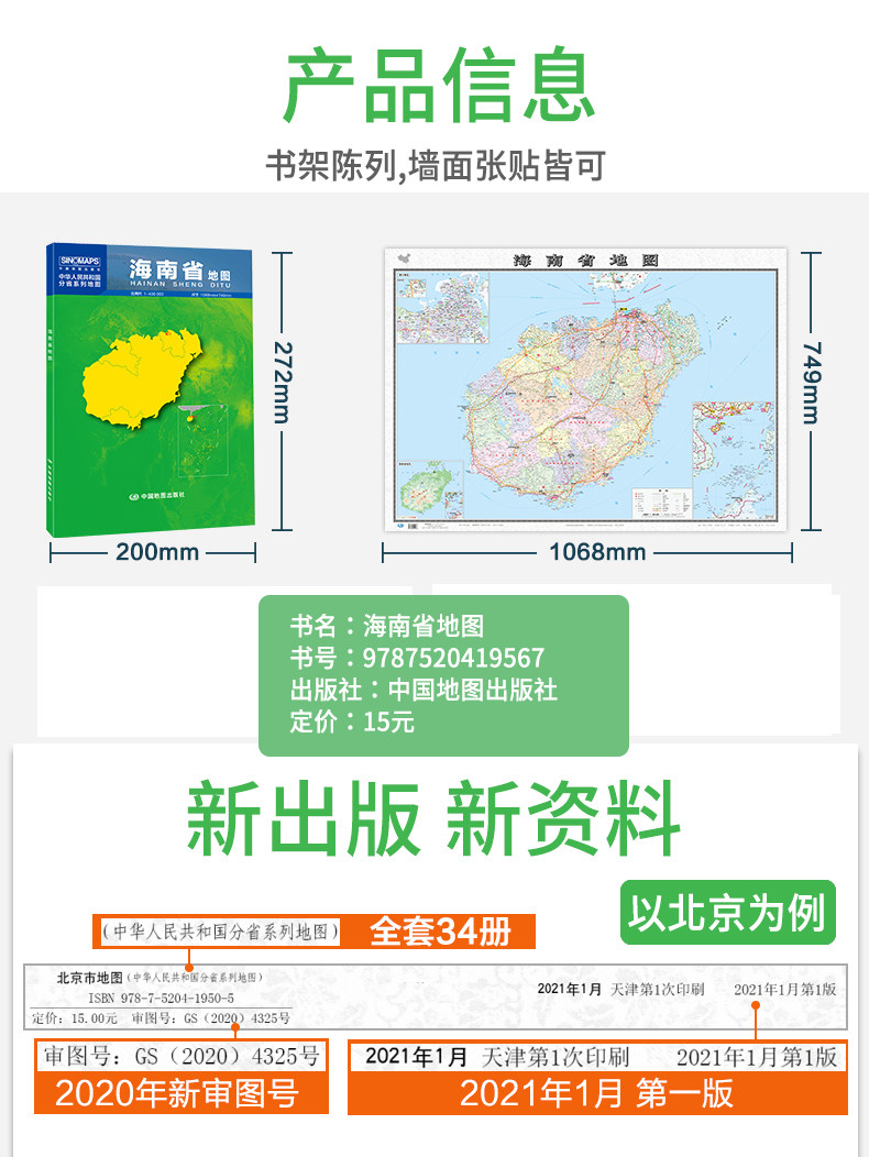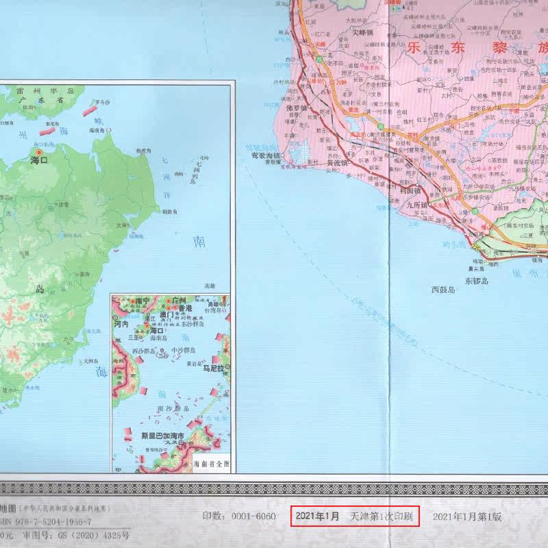 Карта Хайнана все еще 2021 г. Версия 2021 Сумки Складные бумажные карта 1 *75 метров города и округа подробно описывают большое соотношение большие доли политического района Хайнана