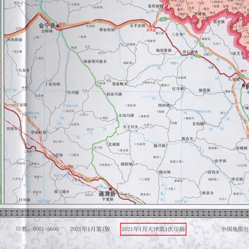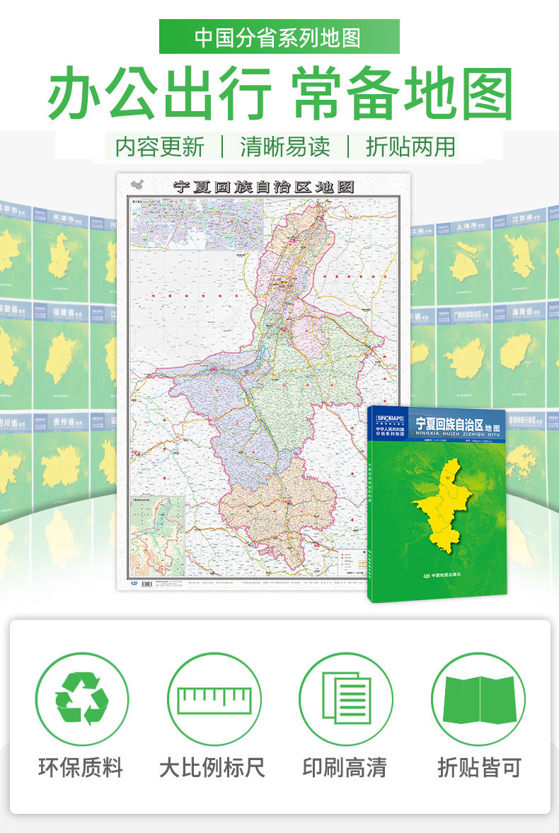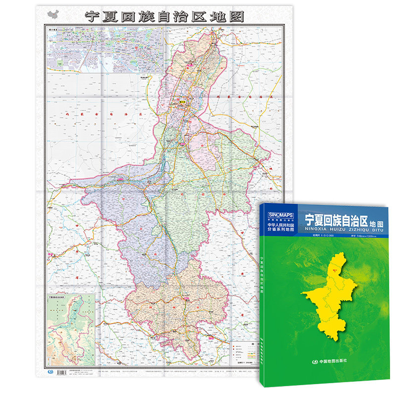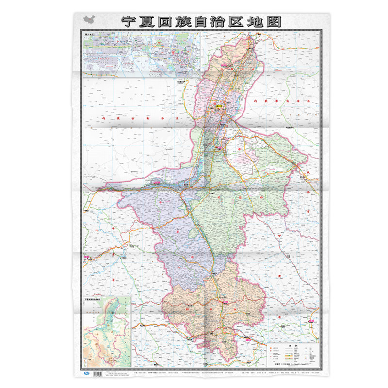 Карта Ningxia Автономная региона карта карта 2021 Складные пакеты складывающих бумажных карт 1 *,75 метра города и округа подробно описывают большие пропорции больших доли правительств