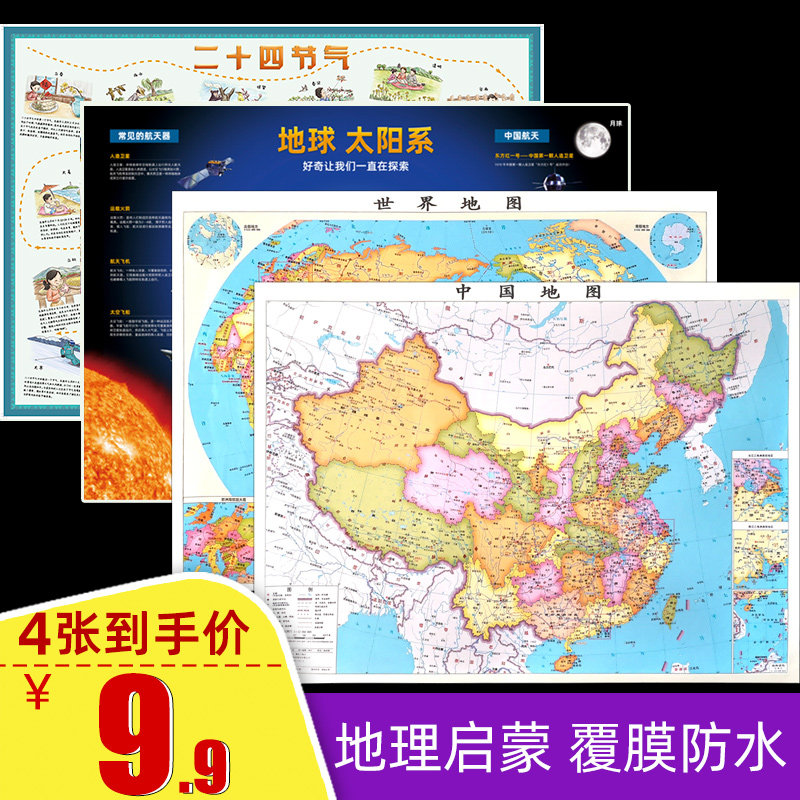 [Всего 4 фотографий] Китайская карта+карта мира+Солнечная система+Двадцати -четверть солнечных терминов 59,4CMX43см Географического Просвещения.