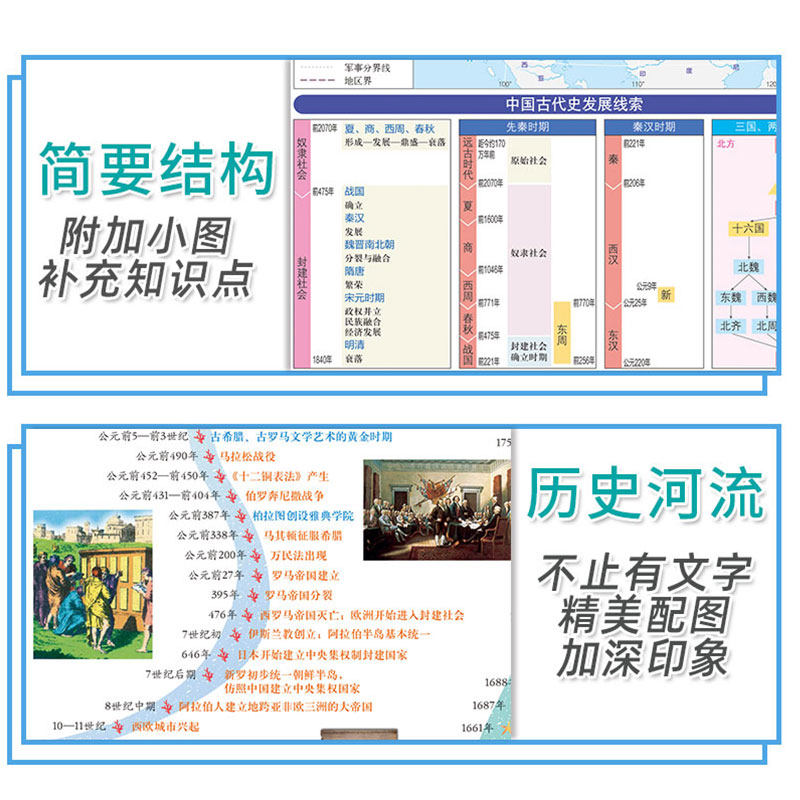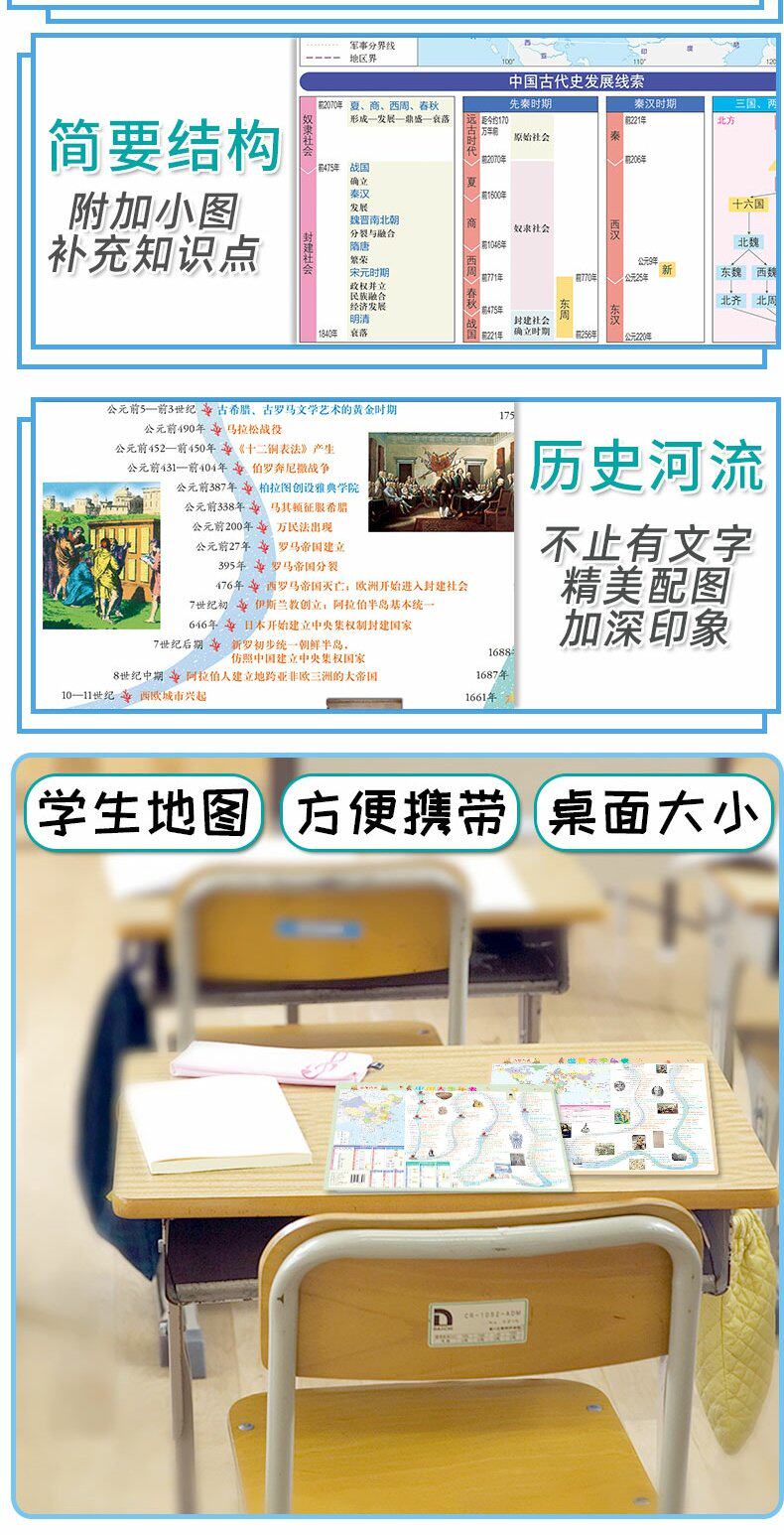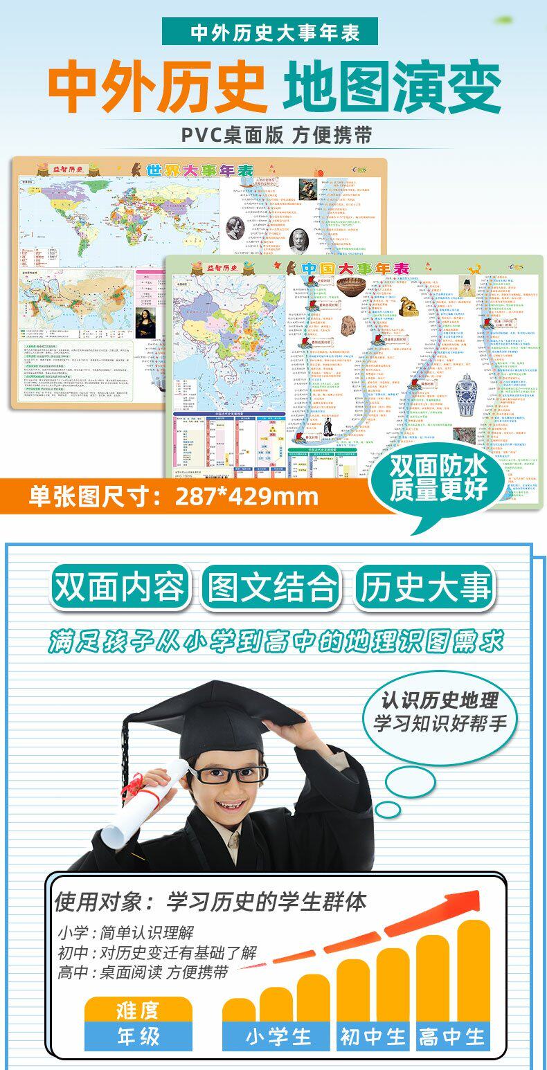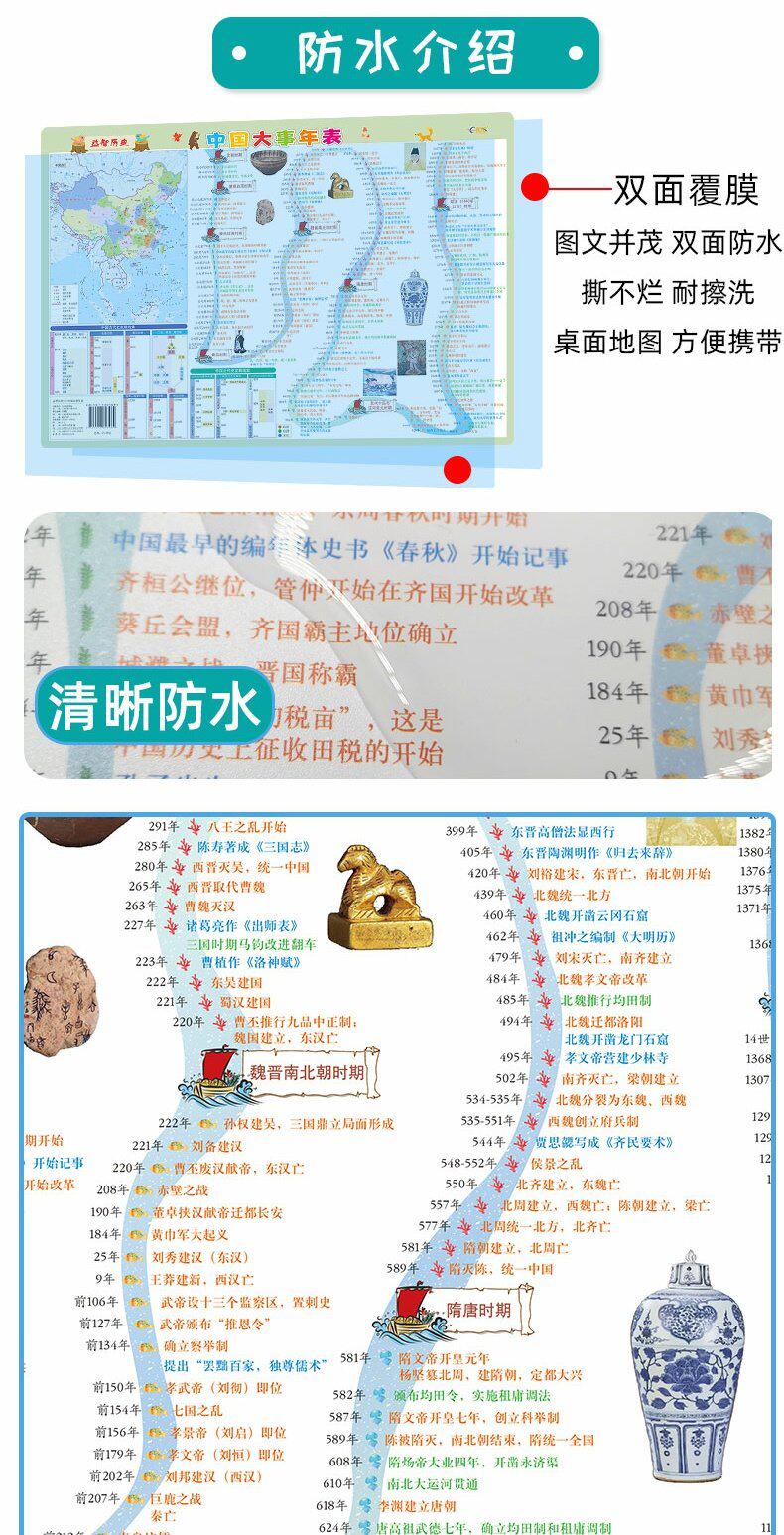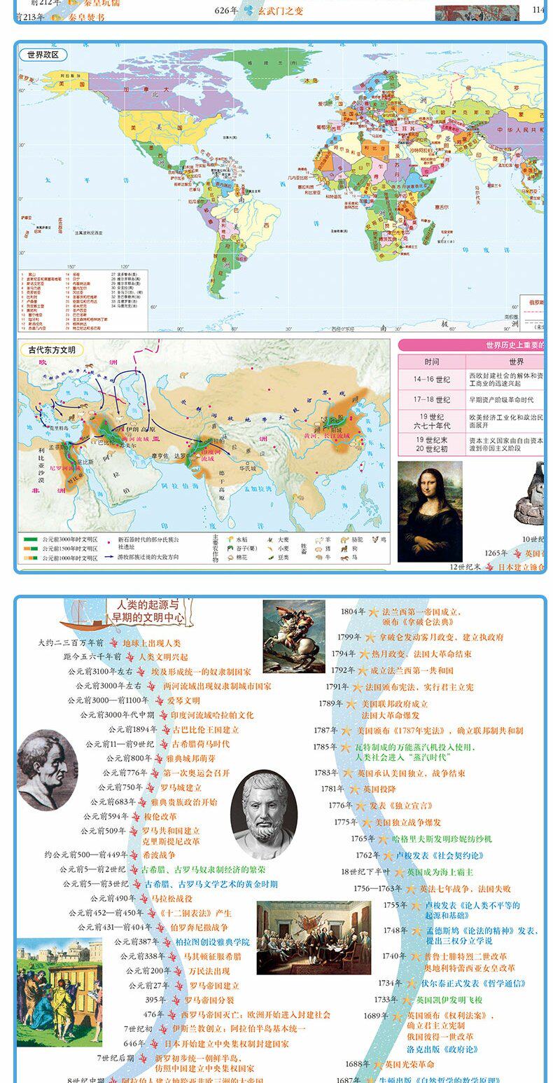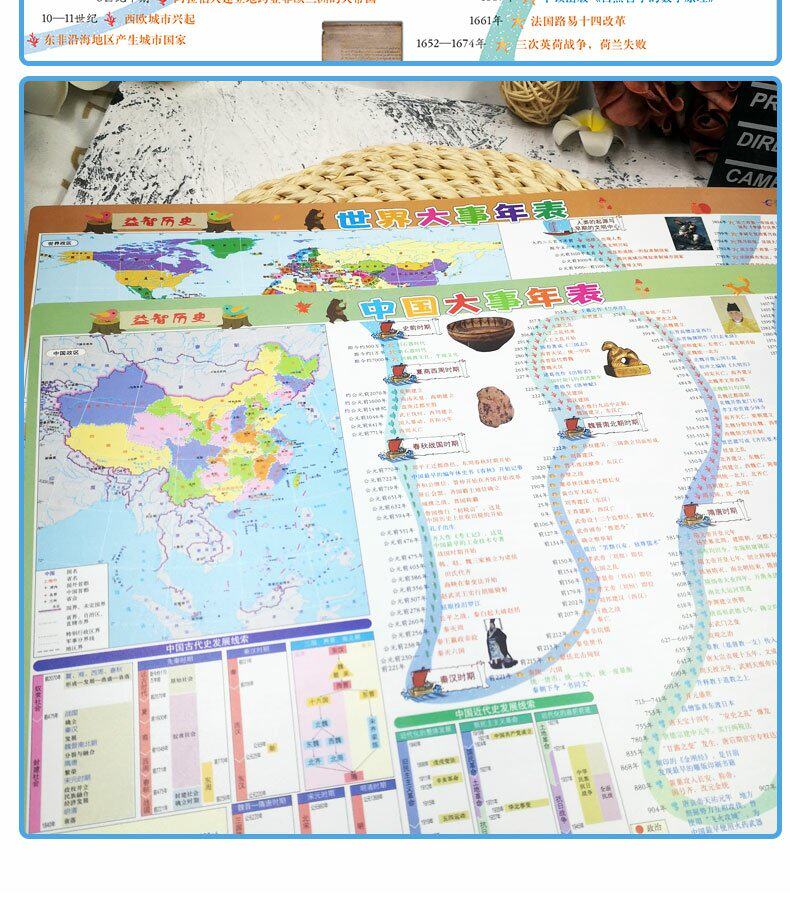 [2 части сета] Мировые исторические события мира (историческая карта длинной реки) Основное событие Время времени настольная версия PVC удобна для чтения юниоров средней школы Universal Learning Tools Learning Tools