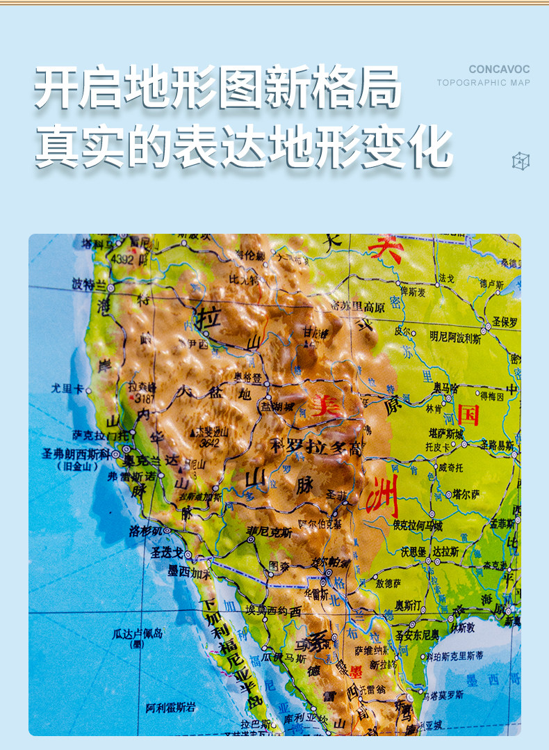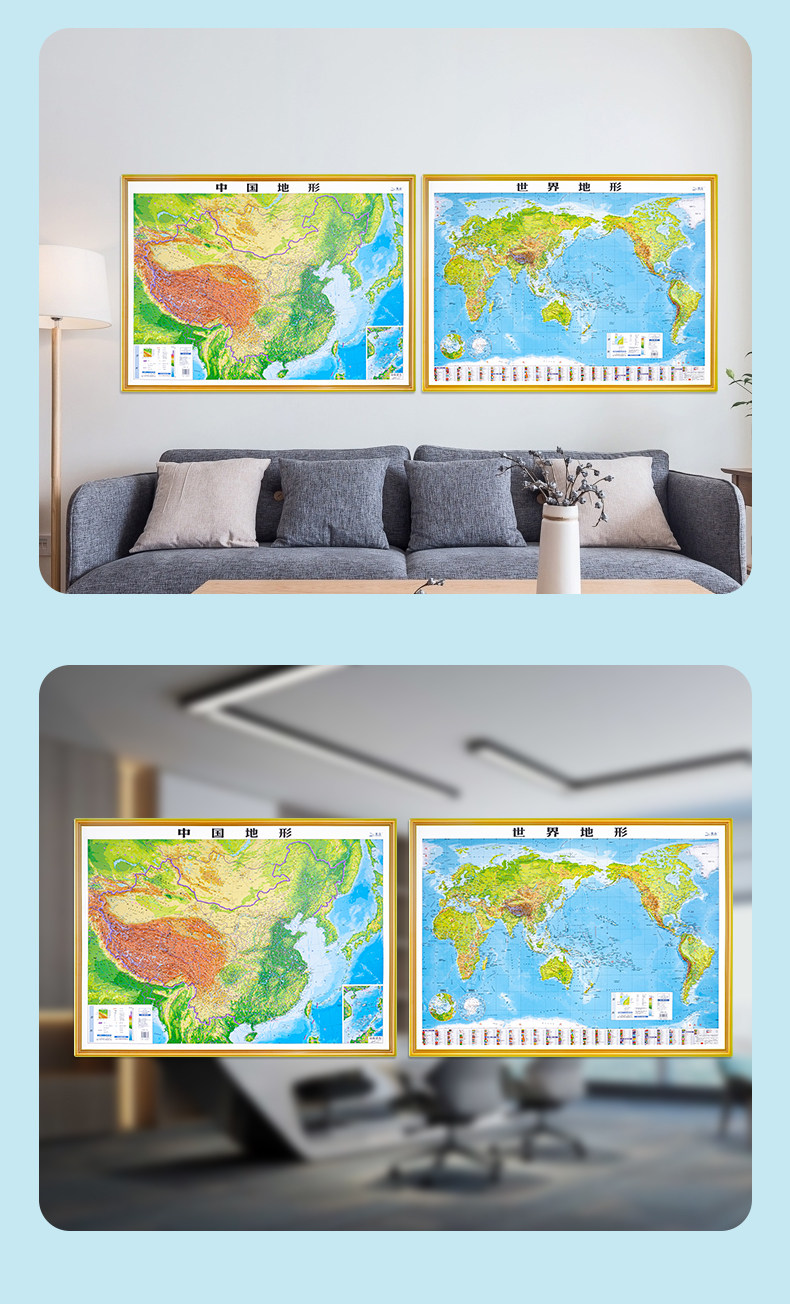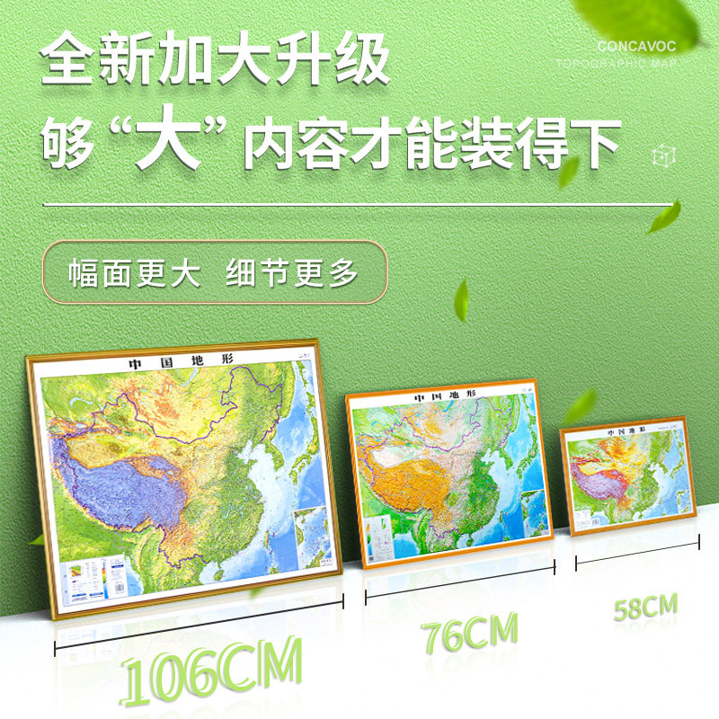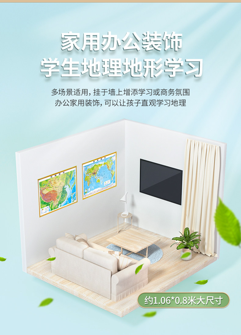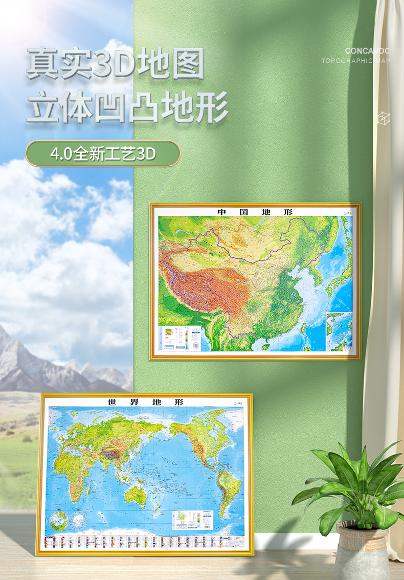 [4.0 обновление тонкой резьбы] Версия карты Китая и карты мира 2024 года. 3D-вогнутая и выпуклая трехмерная карта местности, около 106 см * 0,76 см, офисное обучение, карта Бэйдоу, настенная диаграмма, наклейка на стену, студент с трехмерной местностью.