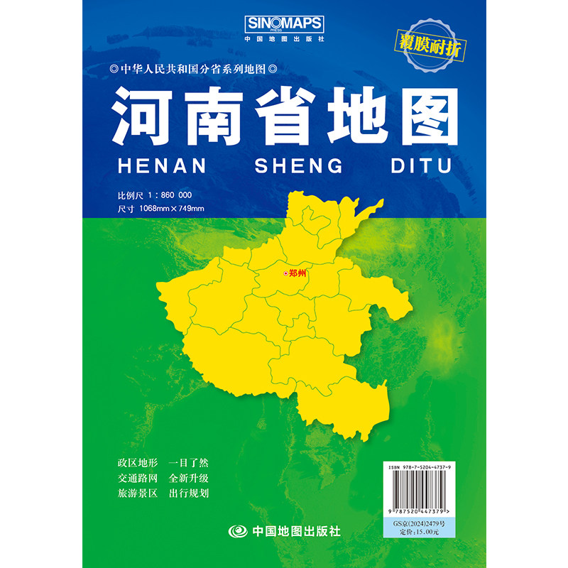 2025 г. Карта провинции Хэнань Ламинированная складная версия Китайская провинция серия серии