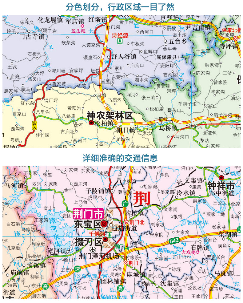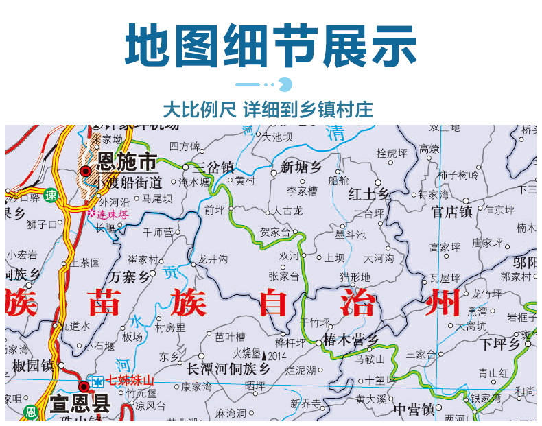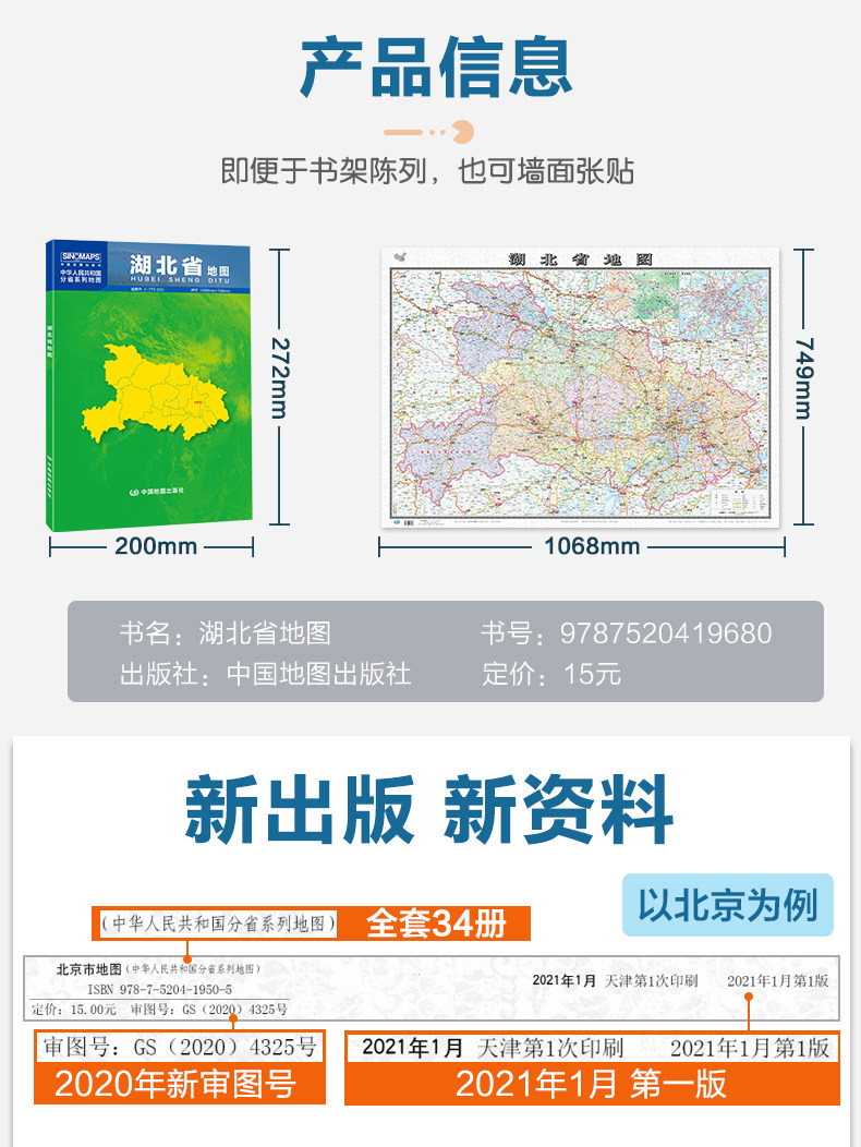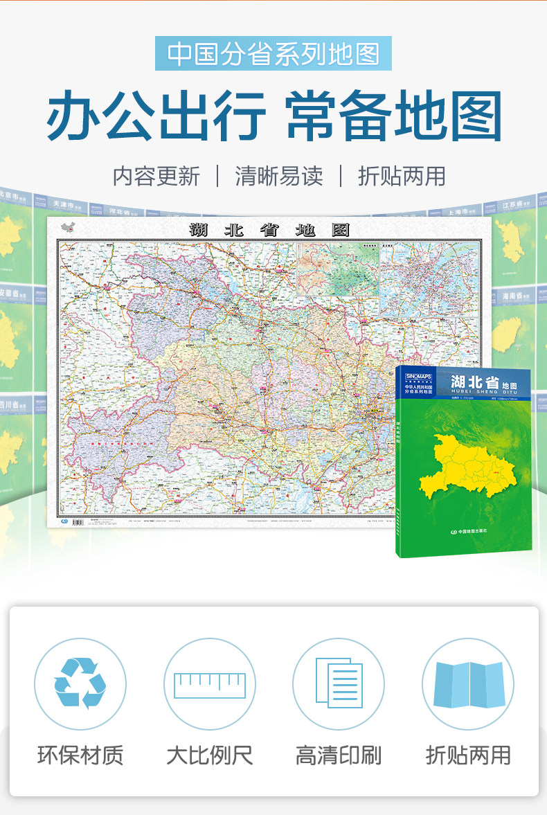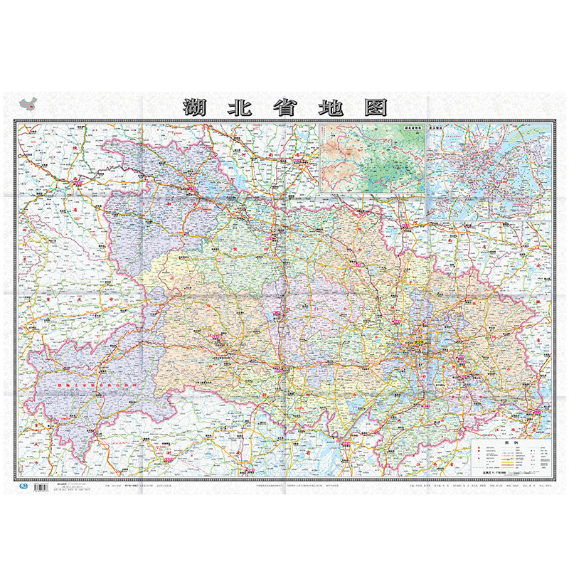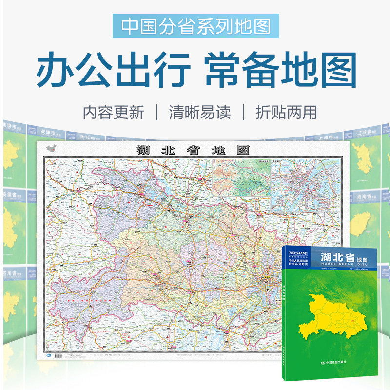 2023 Hubei Map Box Box Folding Edition Folding Edition Китайская серия филиала карта крупная административная лицевая карта Детальная транспортная линия скоростная дорога округа городская дорога