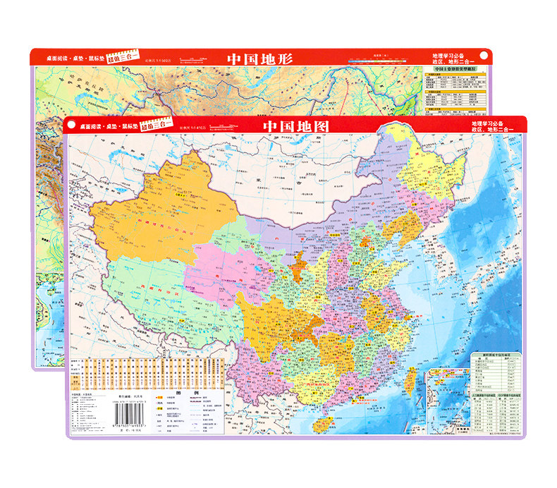 Китайская настольная обучающая карта, настольное чтение, настольный коврик для письма, двусторонная мышка, 2024 года, новая версия, 2 в 1, 41×28.5см, «три в одном»