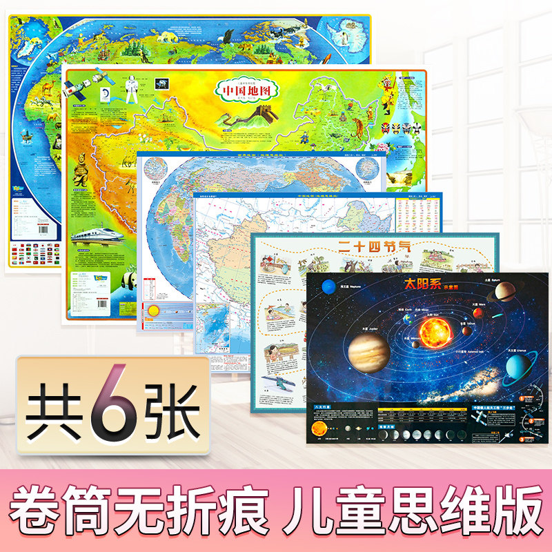 В общей сложности 6 водных нерешительных неразглашений] Детская версия китайской карты и карты мира 1,1 метра Большой размер+четыре 59 см небольших размеров (карта солнечной системы+24 Солнечные термины+Карта политической области в мире Китая)
