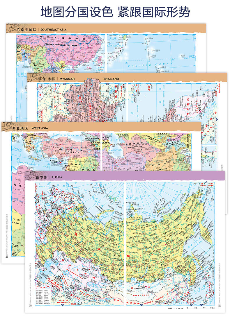 2024 Новая практическая книга карт мира в китайской книге карт, английская контрастность HD Color Self -Draving Self -Draving Tour Удобная практическая кожаная кожа