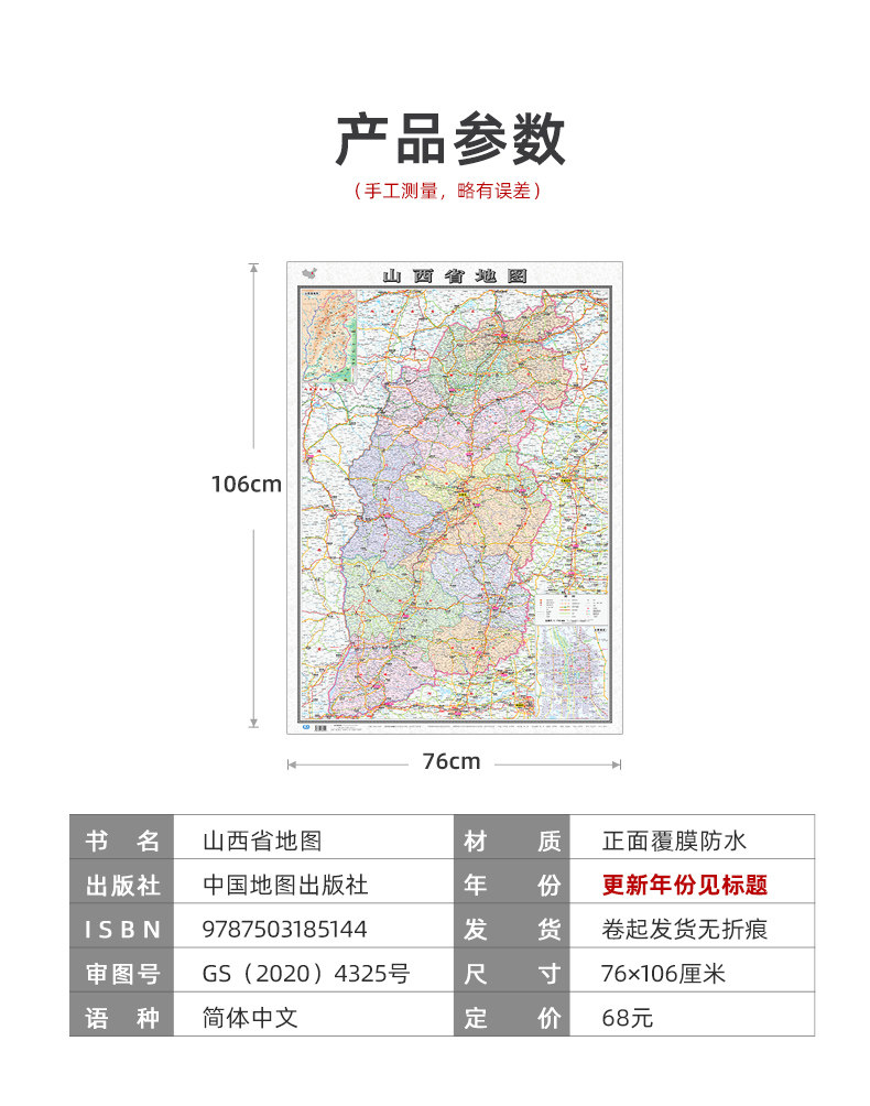 [Толстое издание] Карта карты провинции Шаньси 2022 Новая версия пересмотренная 106*76 см карты карты HD Гудоподаный домохозяйный офис Шаньси Транспортный туризм Административный регион
