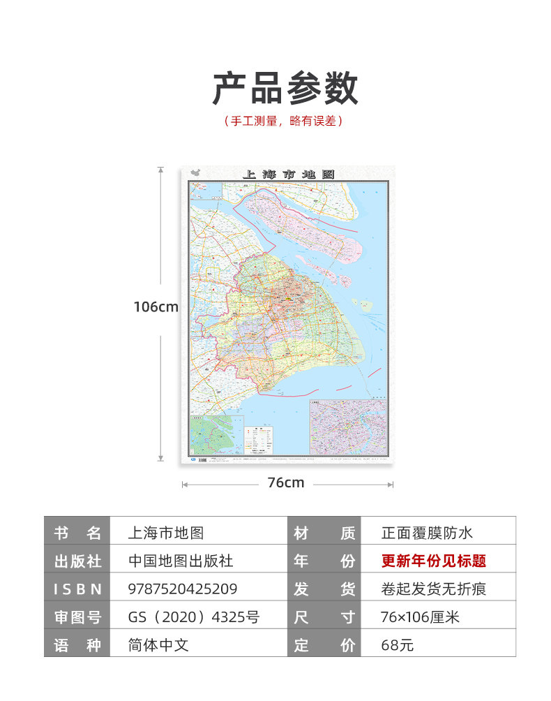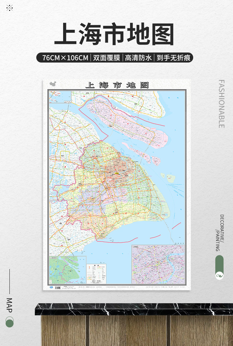 - Двусторонная настенная карта, увеличенная толщина, Шанхай